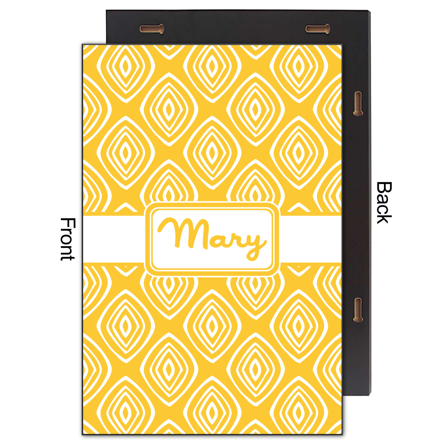 The back of the wood print has 2 keyhole slots on the two sides for hanging both in landscape, as well as portrait mode.