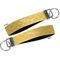 These key fob keychains are made from a polyester weave, right here in the USA. They feature a silver, metal clasp, attached to a round keyring. The piece gives the personalized wristlet a beautiful, finished look. Your customized design is printed on the outside of the keychain strap. We carry these wristlets in two sizes: small, which is 5 inches in width, and large, which is 5.5 inches in width.