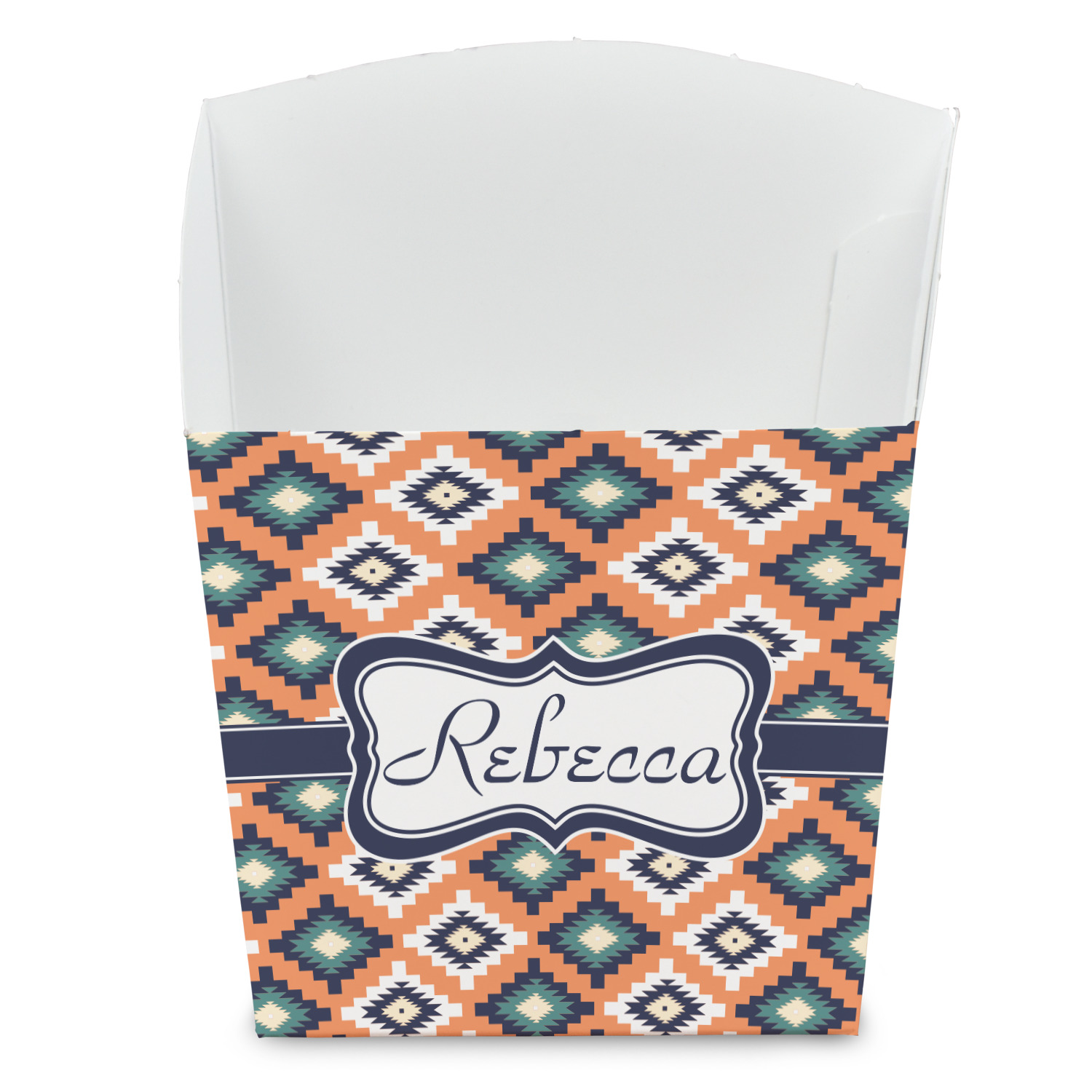 Since it is an open box, it works very well as a party snack cup (instead of plates) for different types of dry snacks and treats such as popcorn, cheezies, pretzels, chips, twizzlers, etc. This box can easily be carried with a drink all in one hand!