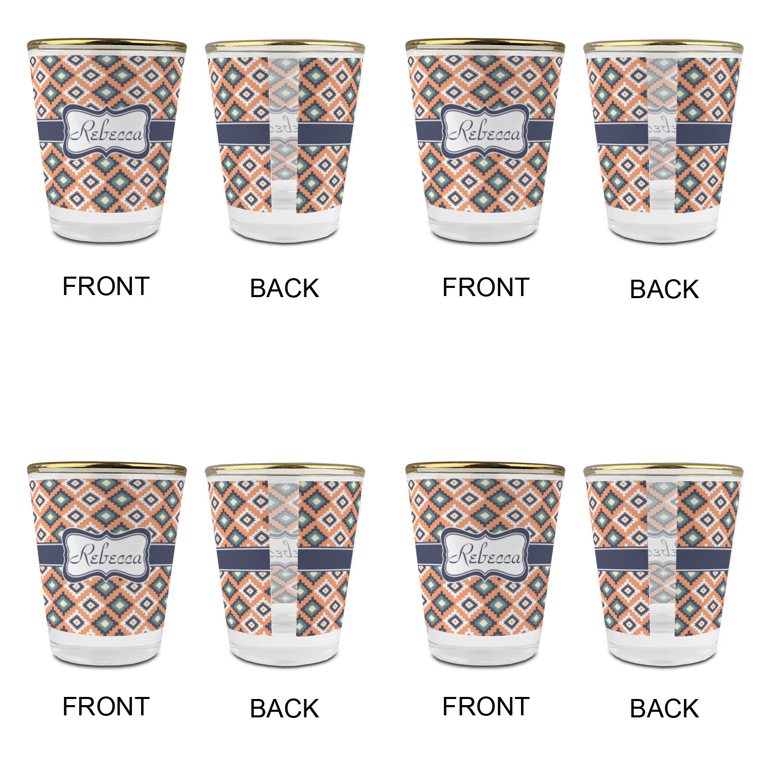 Shape + Symbol Designs for Glass Shot Glasses - 1.5 oz - with Gold Rim - Set of 4