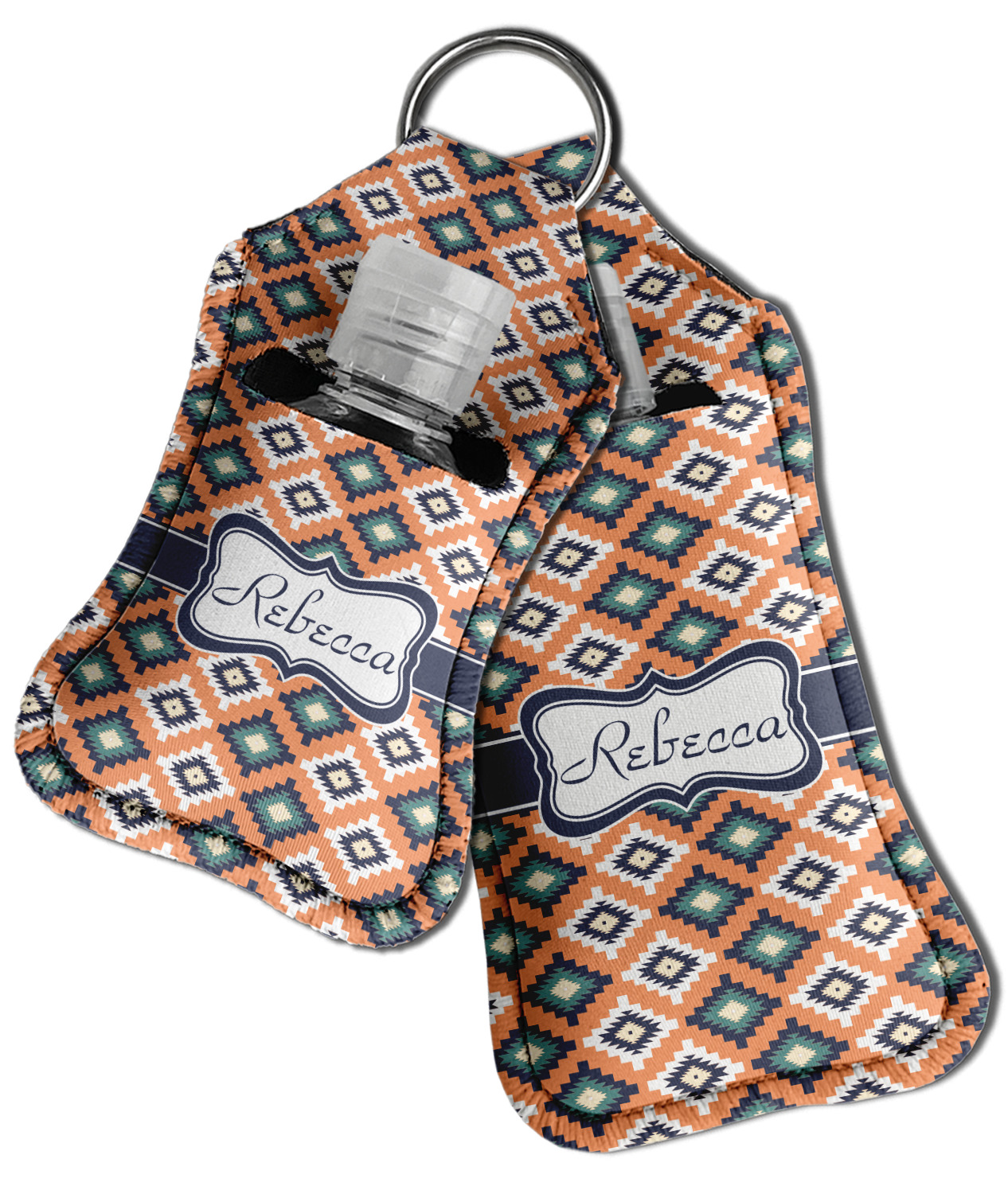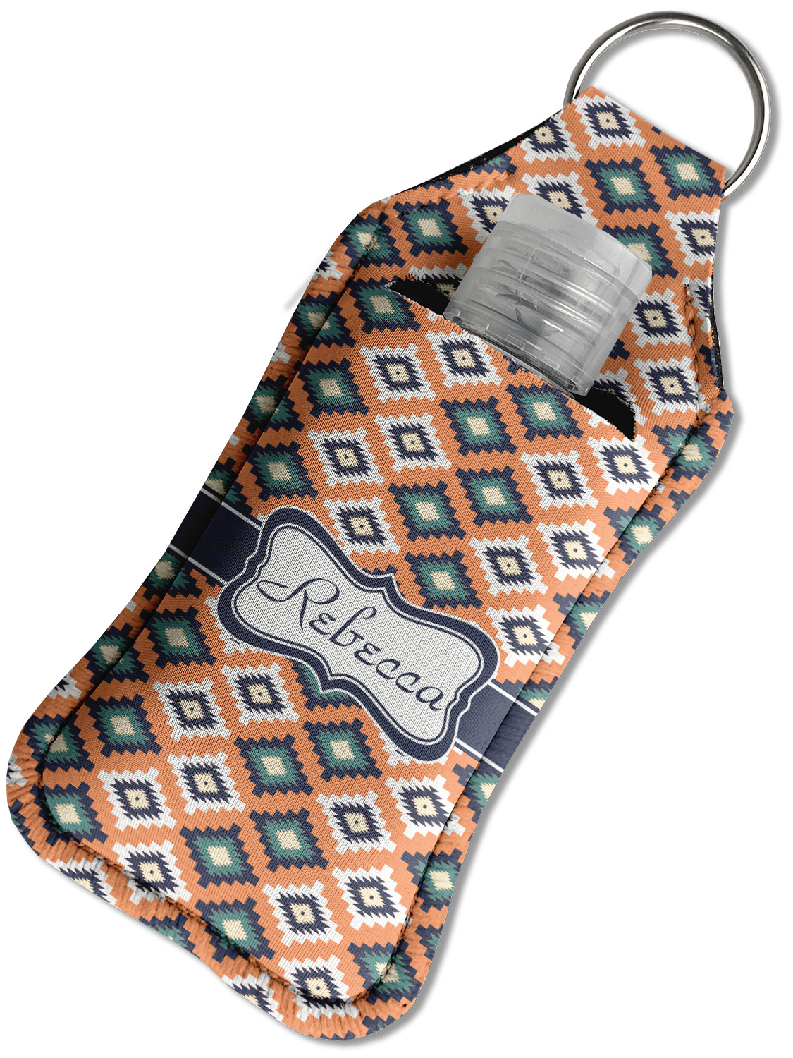 Each hand sanitizer holder comes with its own empty travel-sized, refillable hand sanitizer sure to fit snug in your customized sanitizer case! Our hand sanitizer cases are a durable, yet soft neoprene material sure to last any daily activities or travel agenda. Customize and personalize a hand sanitizer bottle holder with one of our two sizes - small (4.25" x 2.25") or large (5.5" x 2.5"). Each travel sanitizer holder comes with a keyring for attachment on bags, keys, or more!