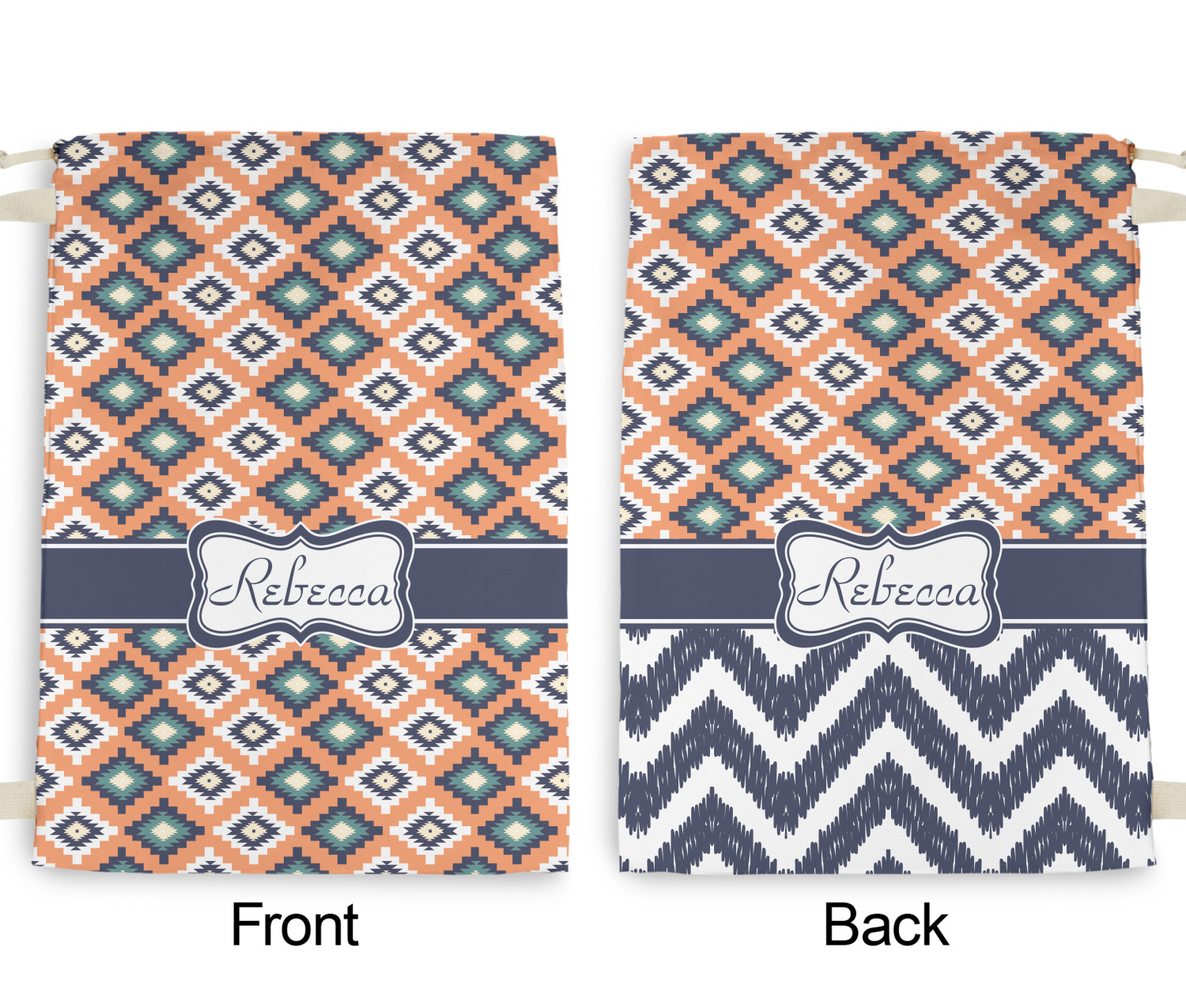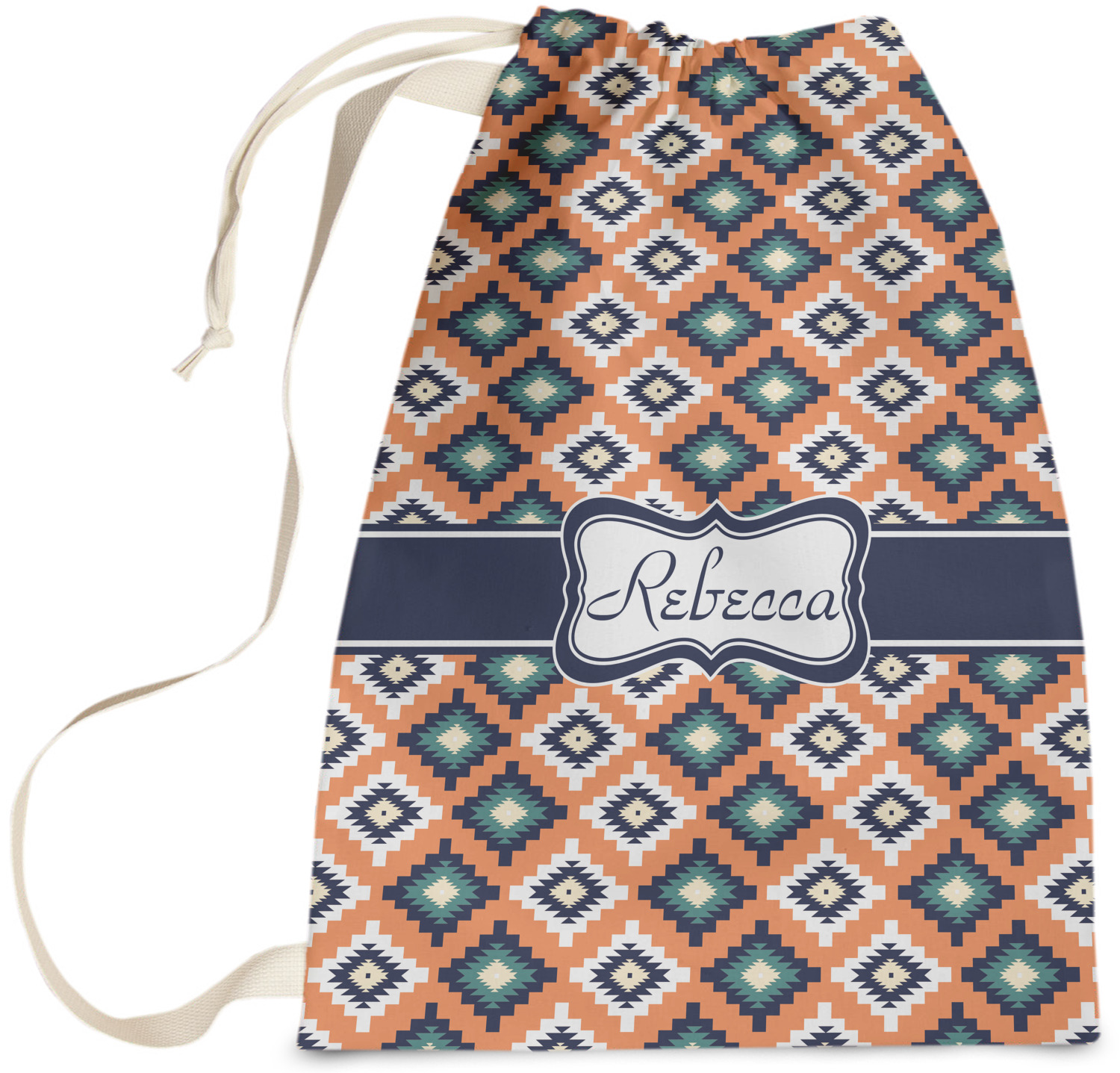 Carry your laundry in style with these customized laundry bags. Available in two sizes, featuring a natural colored woven strap and a cinch cord, these bags hold a lot of clothes or anything else you want to fit in them.