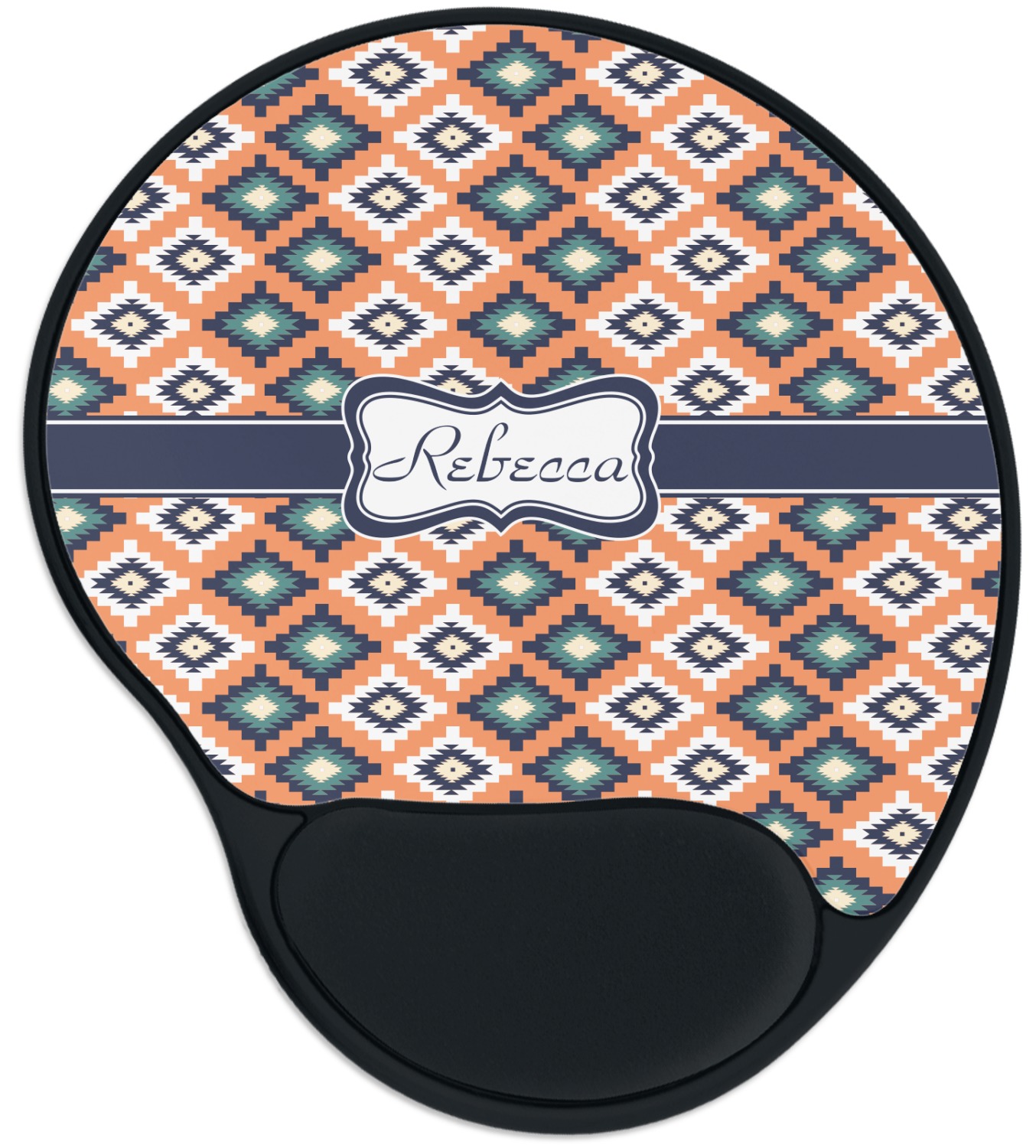 The top of these personalized mouse pads are made from a polyester, while the underside is plastic. The back of these mouse mats include rubber feet to prevent any slippage while in use. A padded wrist support, made from plush memory foam, occupies the bottom section of these computer mouse pads. Your customized design is printed onto the face of this mat, with the remaining sides and support piece colored in black. The mat itself is rounded and measures at 10.25" x 9.13".