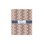 This fun, tribal design features stitched diamonds in cream and blue, scattered across a pale orange background. The effect is rather mesmerizing.