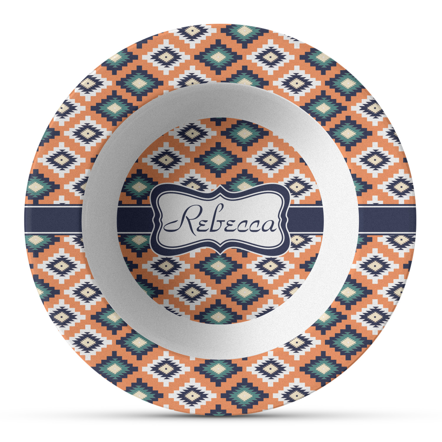 Made from a composite, thermo-set, polymer plastic, these dinner bowls have the versatility, durability, and weight of a melamine bowl without any of the downsides of melamine. Unlike melamine dinnerware, these bowls can withstand high heat. These custom plastic bowls can even handle temperatures of up to 250 degrees Fahrenheit, for up to 60 minutes. The pieces of our plastic dinner set are never made with harmful chemicals, such as BPAs, formaldehyde, DEHPs. We display your personalization on the base of this bowl's interior, while the bowl itself has an 8.75" diameter and is 1.75" tall.