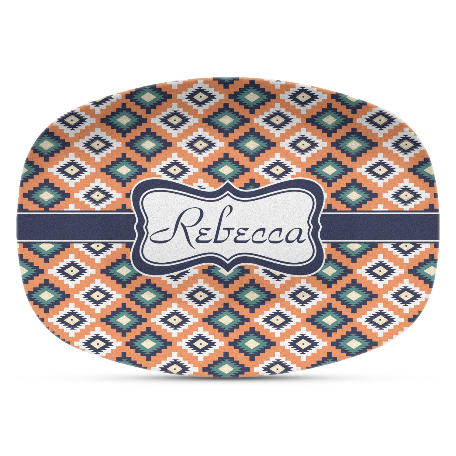 These serving platters are made from a composite, thermo-set, polymer plastic that gives it the versatility, durability, and weight of a melamine platter, without any of the downsides of melamine. These personalized platters, can withstand temperatures up to 250 degrees Fahrenheit, for up to 60 minutes. No harmful chemicals, such as BPA, formaldehyde, and DEHPs were used in the manufacturing of this product. This large serving platter measures at 14" x 10.25", and is spacious enough to hold any of your appetizers or bite-sized desserts. The platter exhibits your personalization across the entirety of its front.