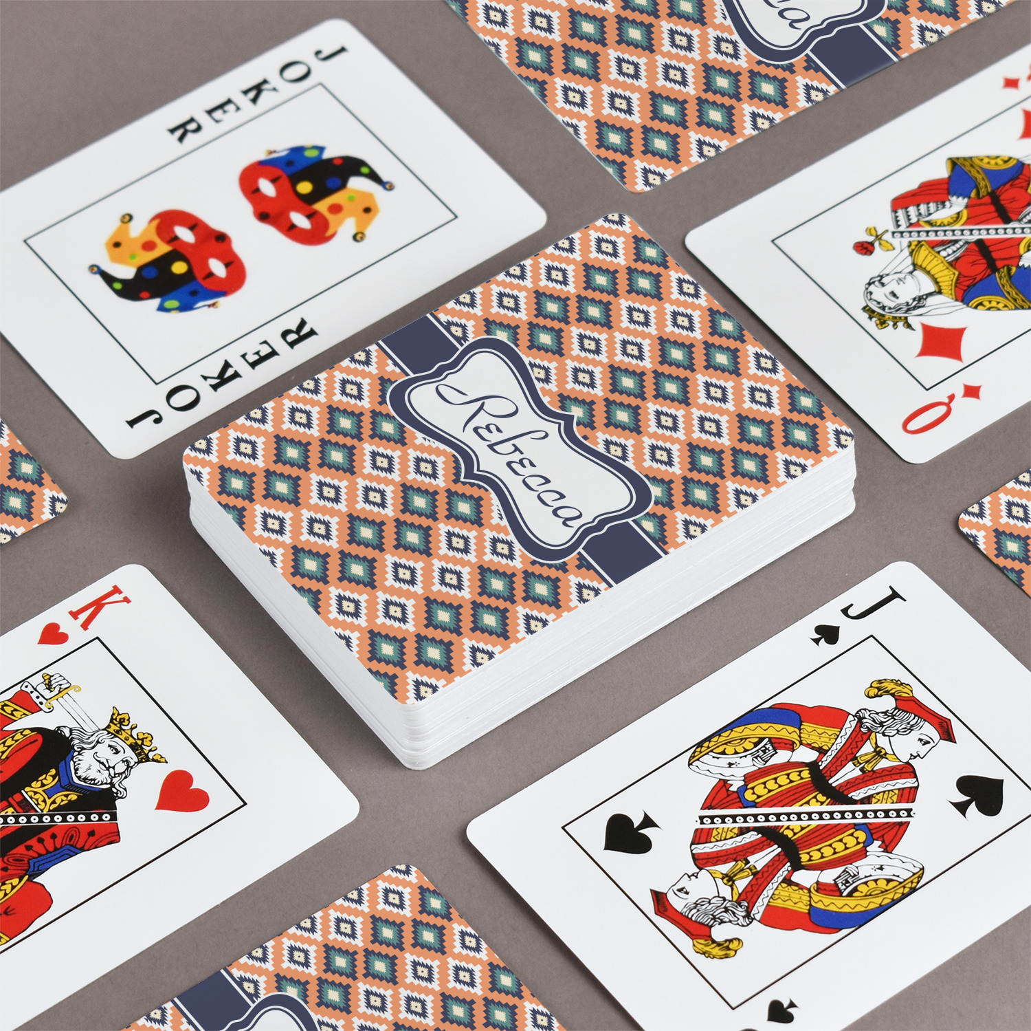 Our playing cards are perfect for family game nights or poker nights. A deck of customized playing cards ups the level of fun & entertainment to your game or poker nights. Imagine playing cards customized to match the theme of your game room, or game night, or that special event, or occasion with gambling tables!