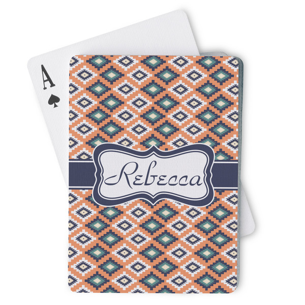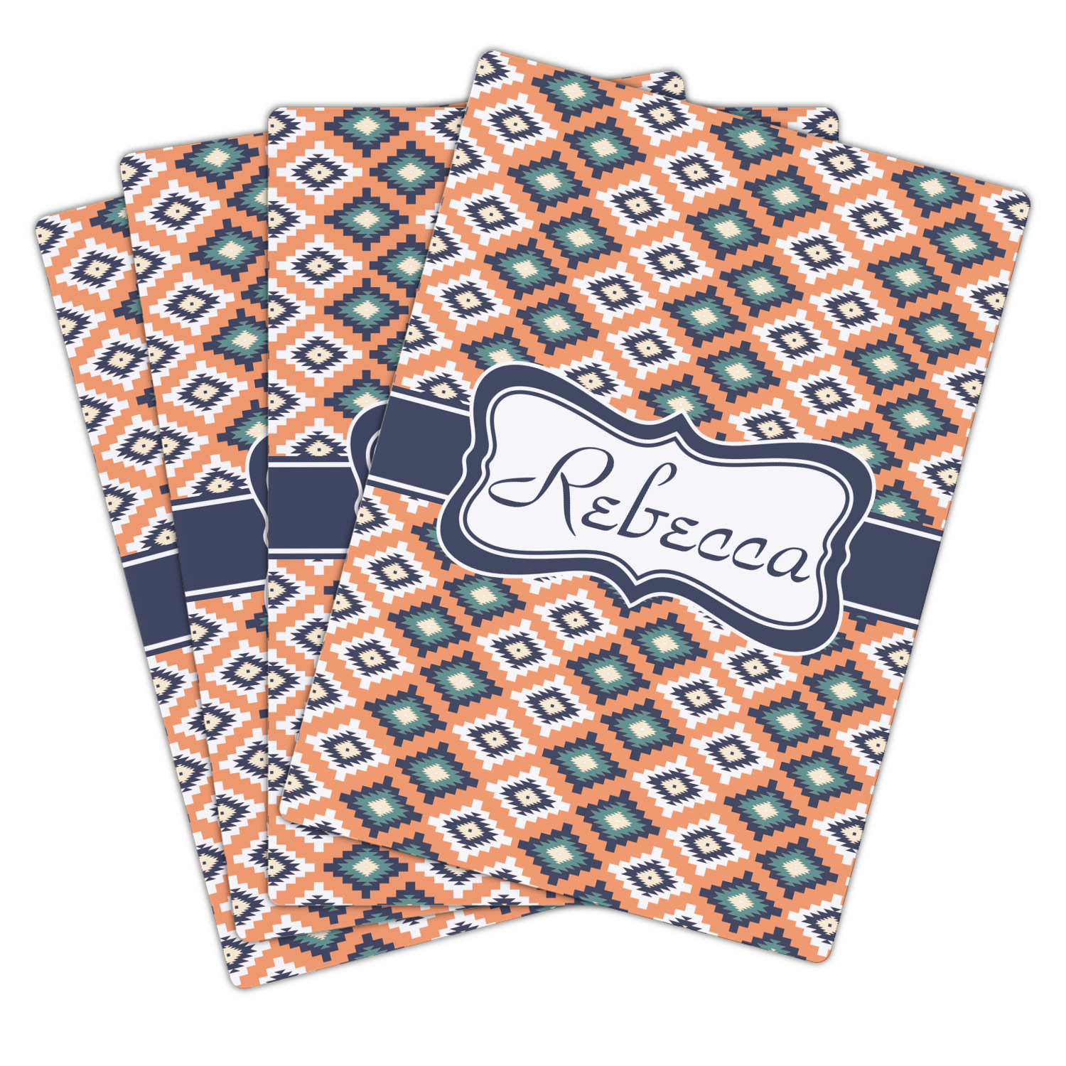 The customization / personalization is printed on the back side. The playing cards have a low gloss coating on both sides. The cards are packaged in a clear plastic box.