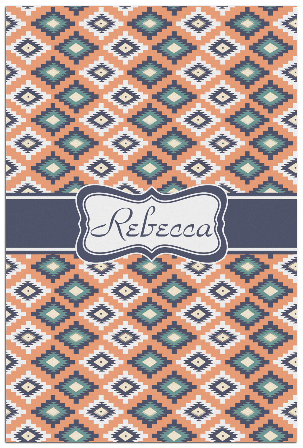 This fun, tribal design features stitched diamonds in cream and blue, scattered across a pale orange background. The effect is rather mesmerizing.