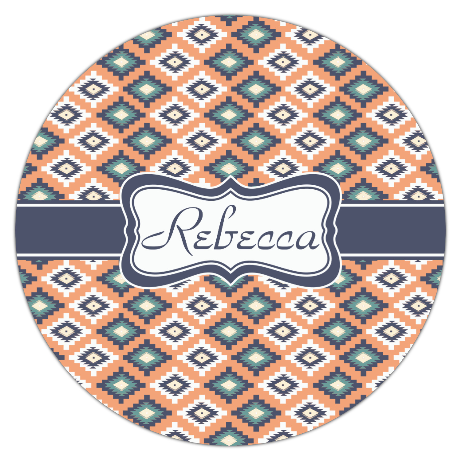 This fun, tribal design features stitched diamonds in cream and blue, scattered across a pale orange background. The effect is rather mesmerizing.
