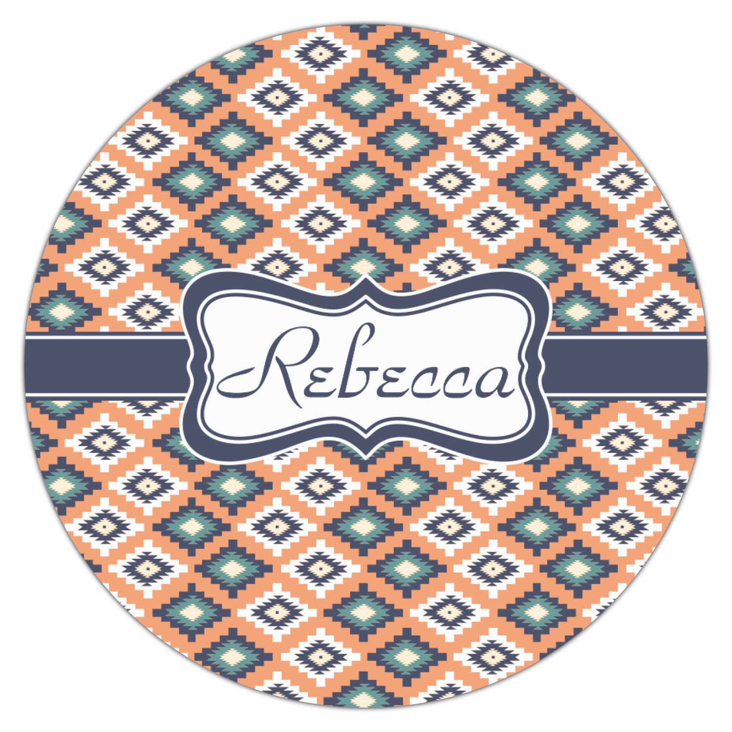 This fun, tribal design features stitched diamonds in cream and blue, scattered across a pale orange background. The effect is rather mesmerizing.