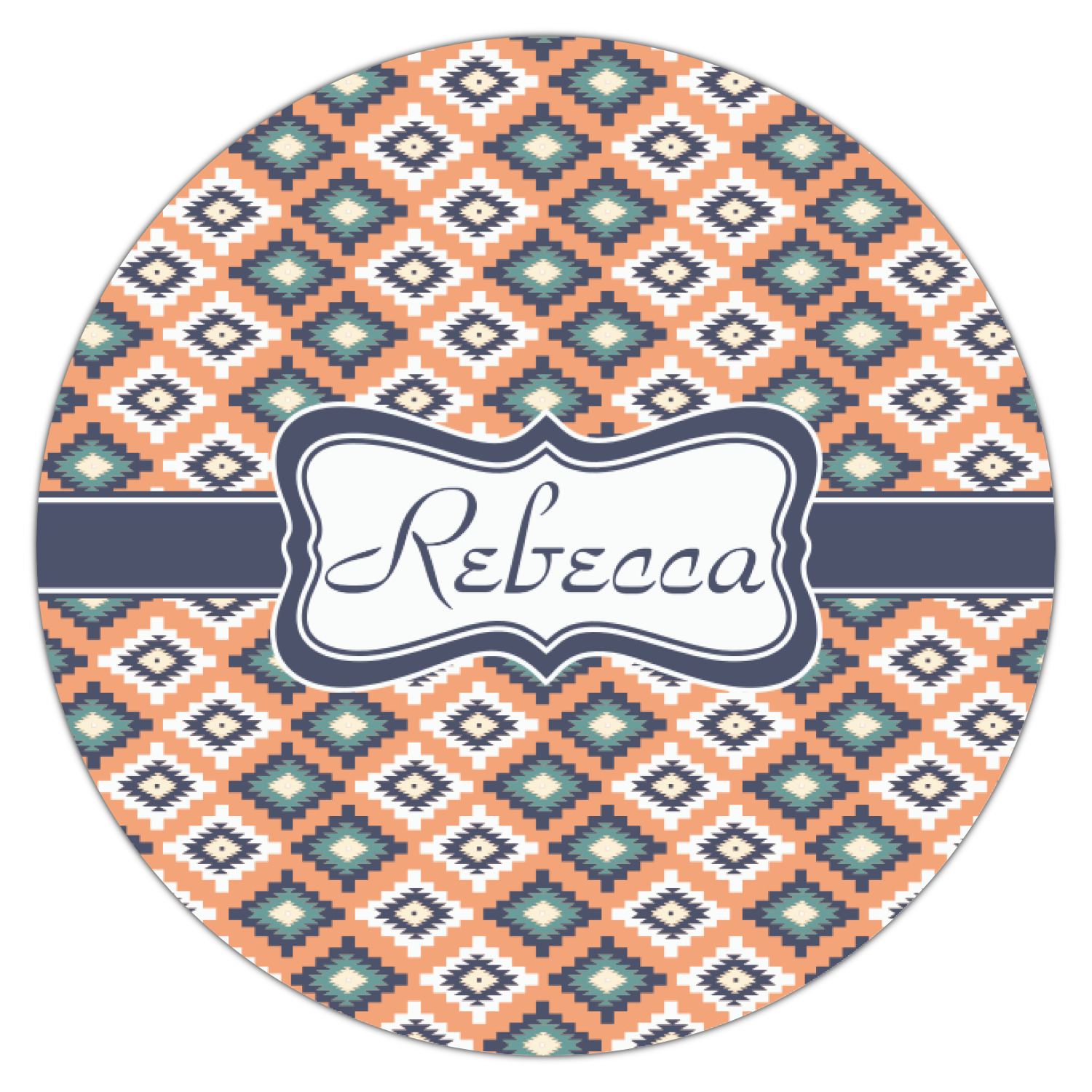 This fun, tribal design features stitched diamonds in cream and blue, scattered across a pale orange background. The effect is rather mesmerizing.