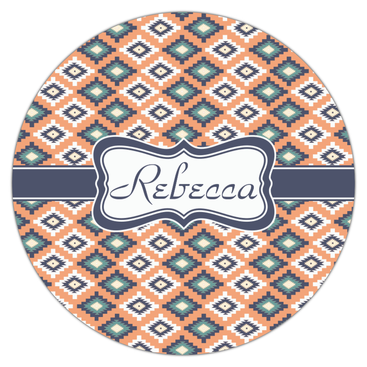 This fun, tribal design features stitched diamonds in cream and blue, scattered across a pale orange background. The effect is rather mesmerizing.