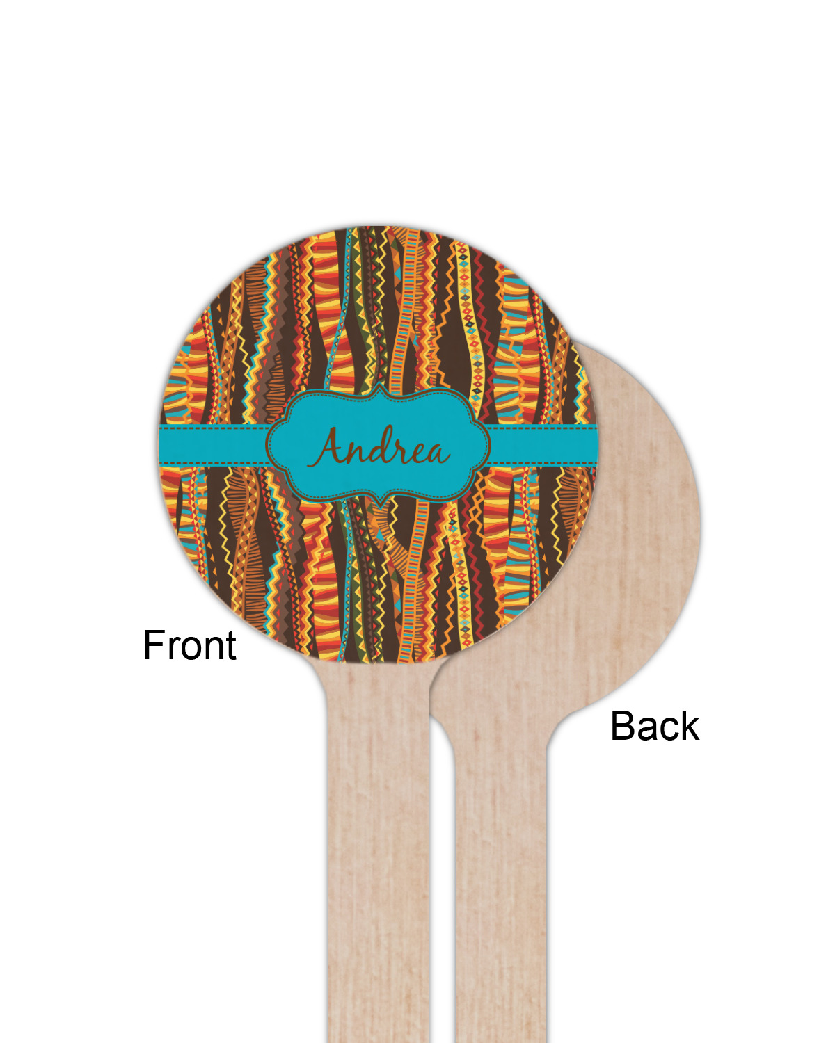 Traditional meets trendy in this fun, tribal design. This design is composed of wavy ribbons covered in stripes, chevron, triangles- you name it!- in a variety of warm colors with teal accents.