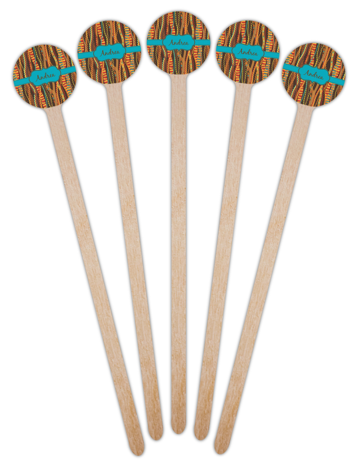 Traditional meets trendy in this fun, tribal design. This design is composed of wavy ribbons covered in stripes, chevron, triangles- you name it!- in a variety of warm colors with teal accents.