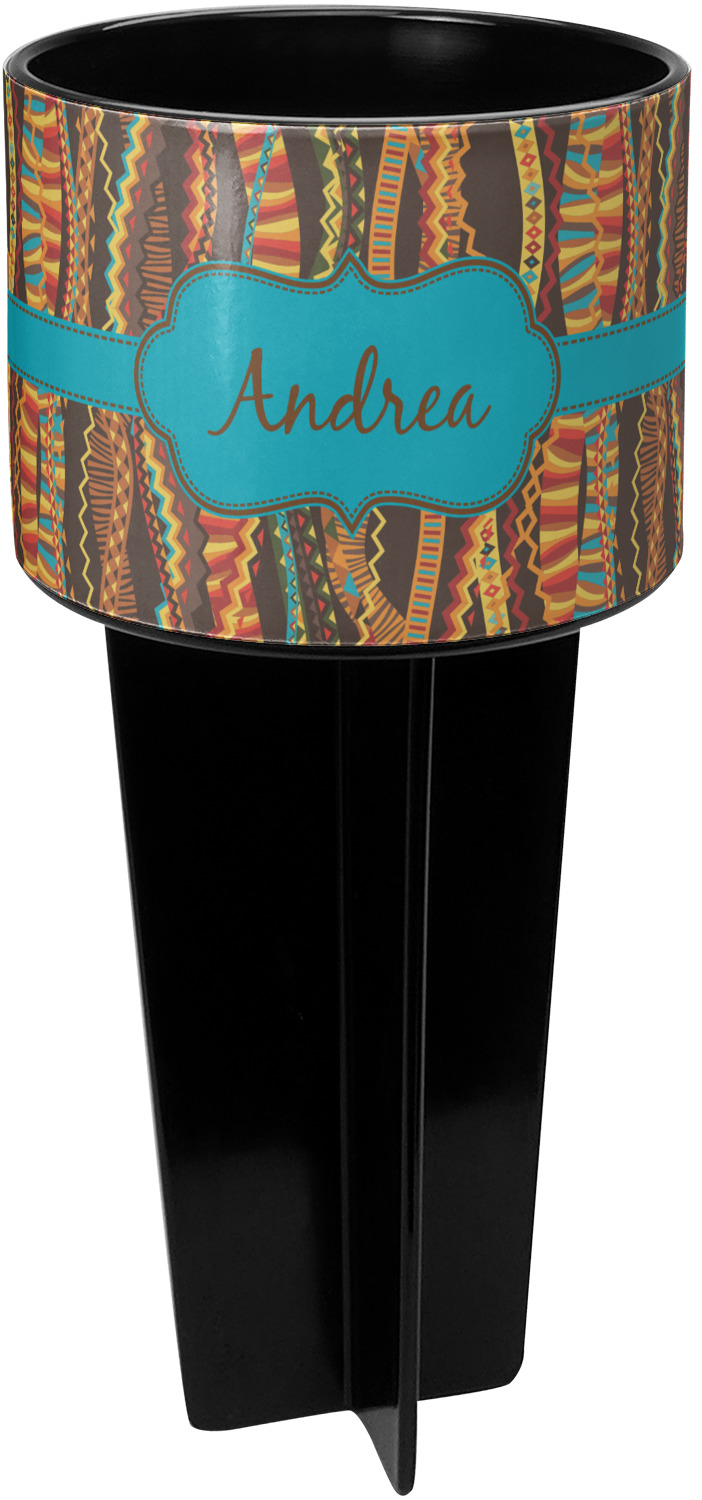This cup holder has a large stake at its bottom that anchors it to the sand or ground below, while the cup holder rests above the stake. The entire drink holder is made of durable plastic and displays your customization around the cup holder portion. We sell these personalized beach spikers in two different colors: black and white.