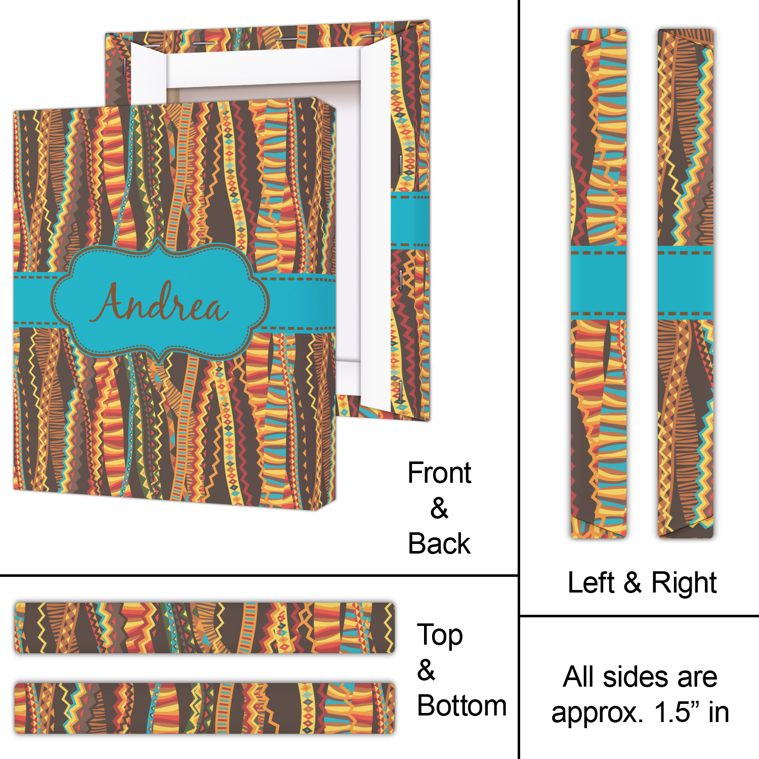 Traditional meets trendy in this fun, tribal design. This design is composed of wavy ribbons covered in stripes, chevron, triangles- you name it!- in a variety of warm colors with teal accents.