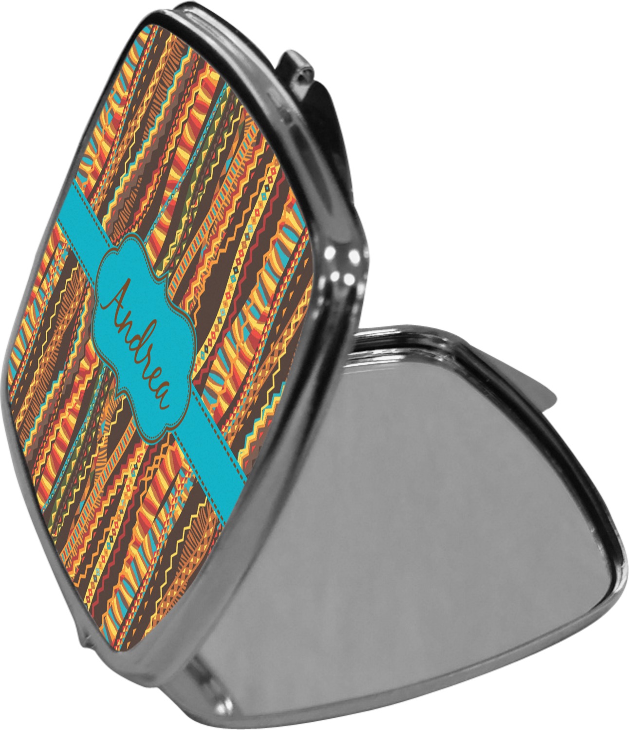 We offer many prints and patterns and many of our patterns are available in 45 different colors. You can personalized the compact mirrors with a name, a monogram or just an initial. We offer several different label, ribbon and font choices. Our customization system lets you create your very own custom & unique product and it lets you preview it before you purchase.
