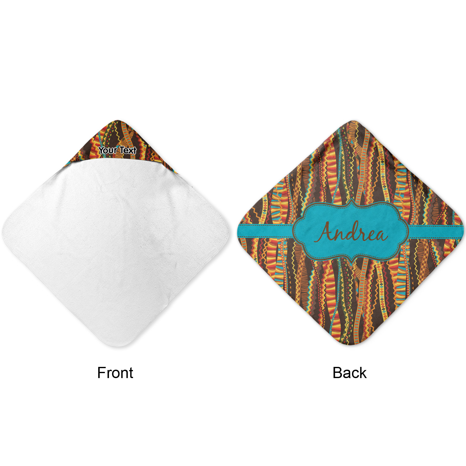 This baby towel is made with a plush microfiber velour and cotton terry. and thus will be soft and gentle against your newborn's skin, but also, very absorbent. Your customization is printed across the front & the hood, while the inside is a classy white.