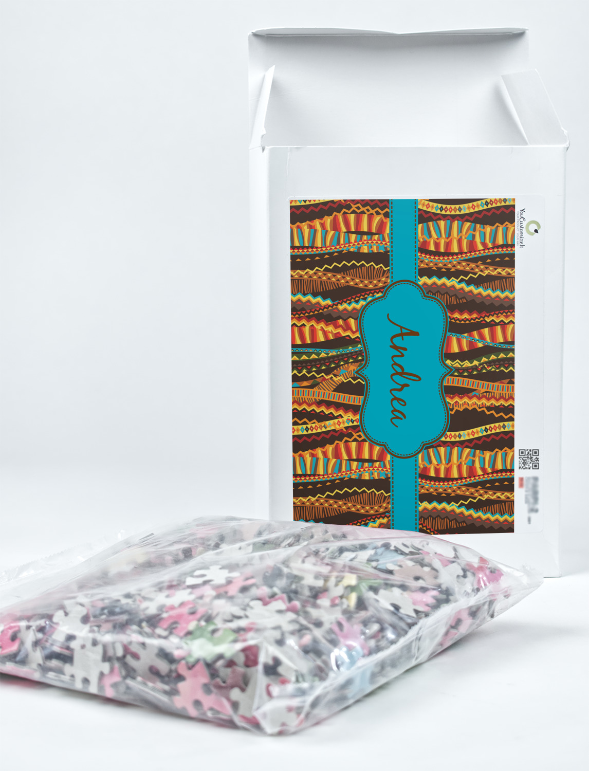You can also upload your logo or art that you or your kids drew. To create more challenging jigsaw puzzles, you can create a pattern from with your logo or artwork. You can also add other elements such as text or personalization.