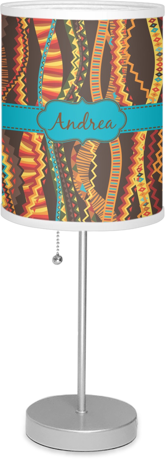 Traditional meets trendy in this fun, tribal design. This design is composed of wavy ribbons covered in stripes, chevron, triangles- you name it!- in a variety of warm colors with teal accents.