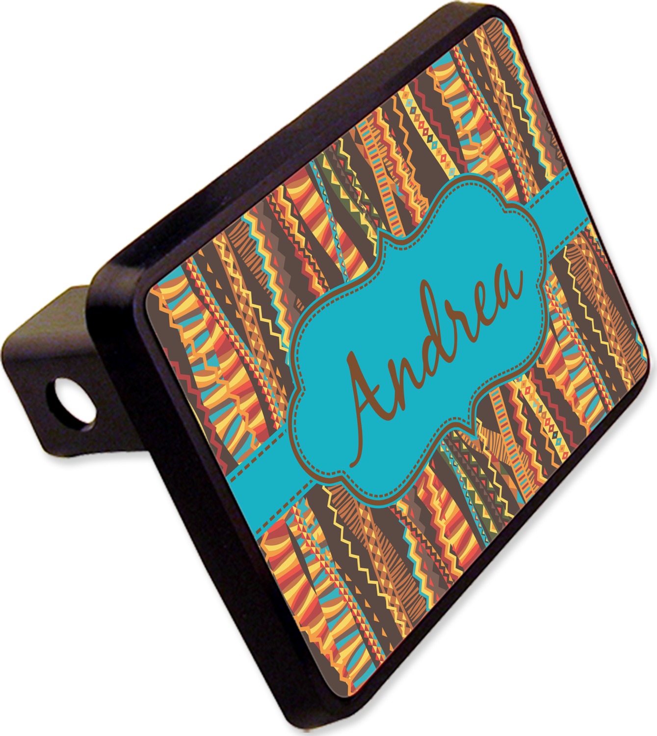 Our receiver hitch covers are molded, durable, and available in a size that fits 2in., square receiver holes. This model is best suited for a Class 3 or Class 4 hitch, but please consult our hitch sizing guide to make an informed purchase. We print your design on the surface of the rectangular cover, while the rest of the cover is a sleek, black color. The design's vibrancy will last up to 2 years in harsh sunlight. Designed for easy attachment, the cover slides easily into your trailer hitch and can be secured using a pin (not included).