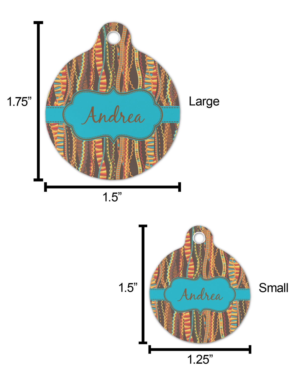 The sturdy, rounded, aluminum tags are available in 2 sizes.