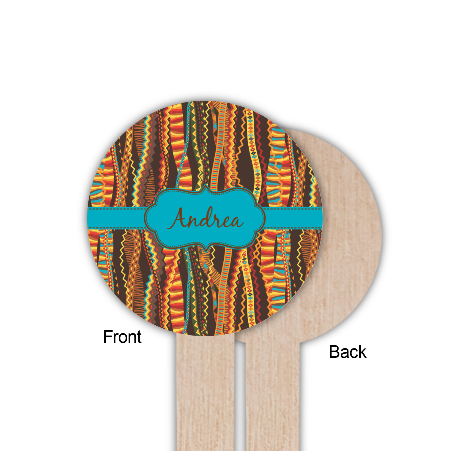Traditional meets trendy in this fun, tribal design. This design is composed of wavy ribbons covered in stripes, chevron, triangles- you name it!- in a variety of warm colors with teal accents.