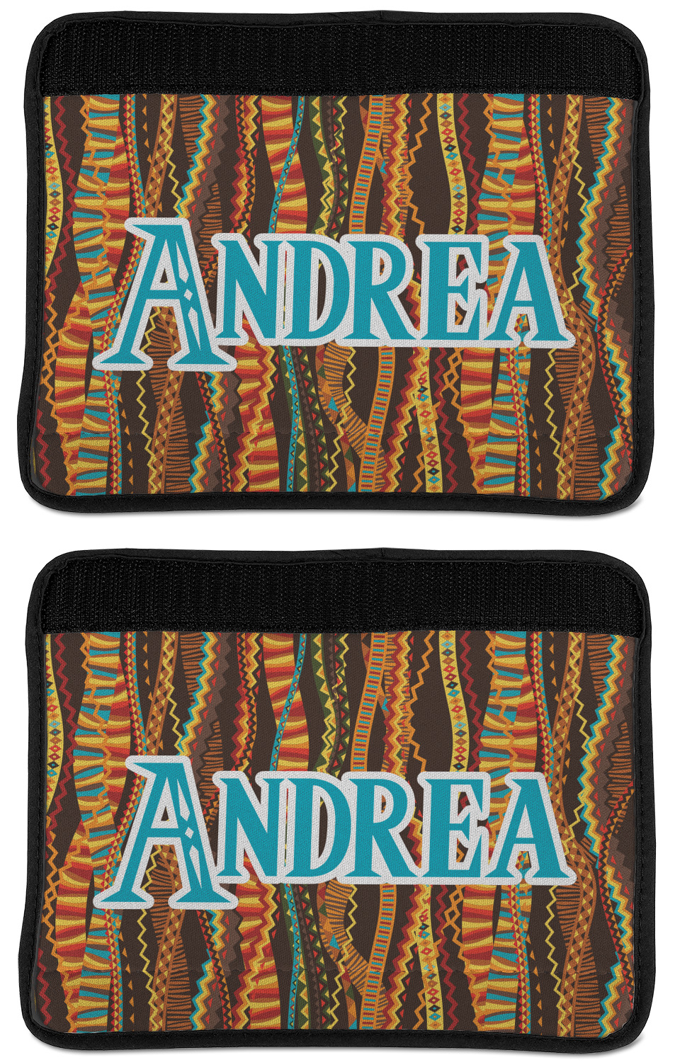 Made from neoprene, our seat belt strap covers wrap around the belt itself and have a Velcro tab for easy attachment and closure. The belt's edges are trimmed with a black polyester for a secure finish. Each cover is 9.5 by 7 inches when open and 9.5 by 2.5 inches when closed. We print your personalized design on the face of the seat belt pad.