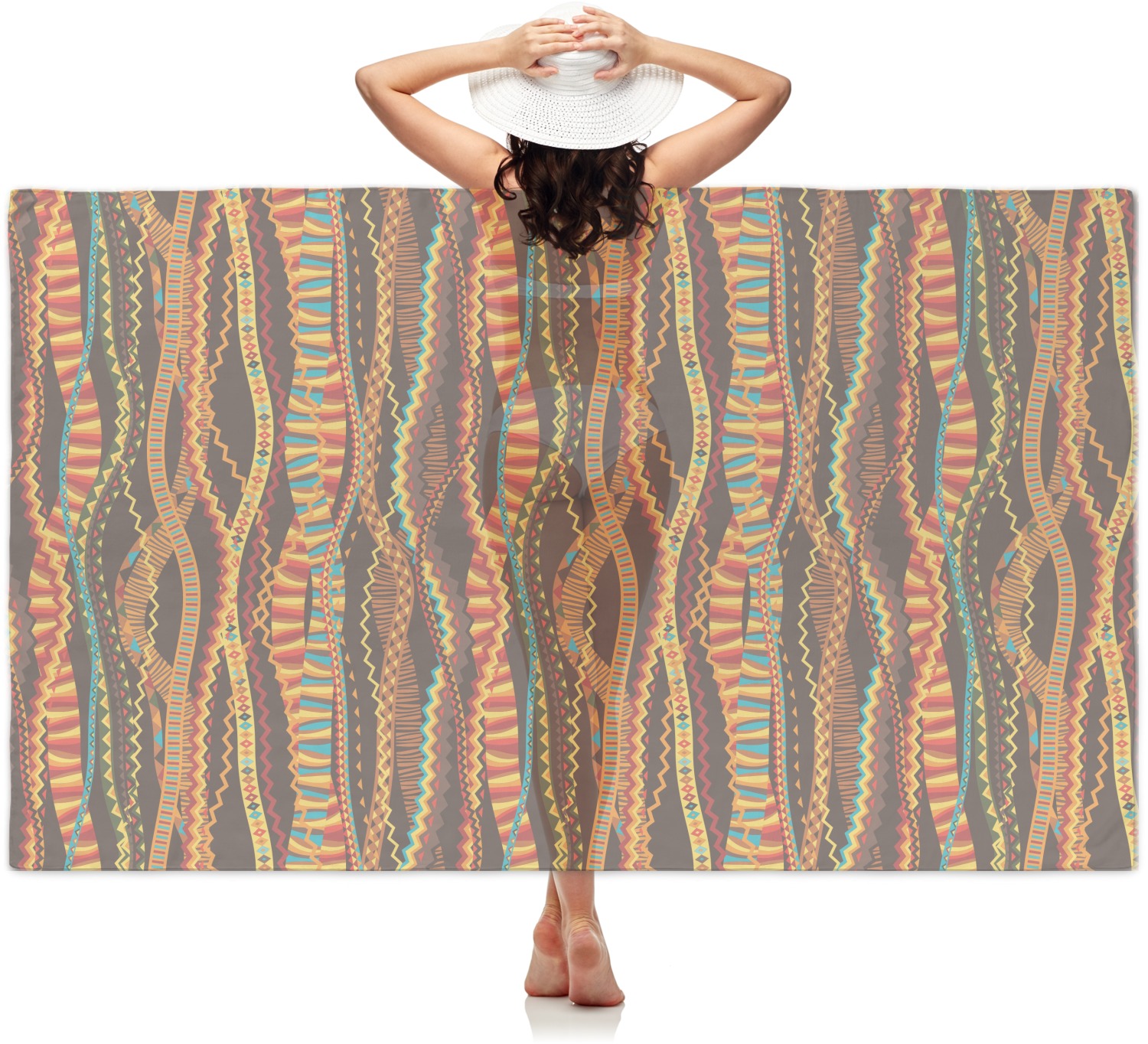 This sarong is 42" x 70" of personalized beauty. It is made of a soft polyester for comfort when against your skin. The material is sheer, so it serves well as a swimsuit cover-up or a shawl. There are so many uses for this wonderful product that you will be sure to find when it is in your hands.