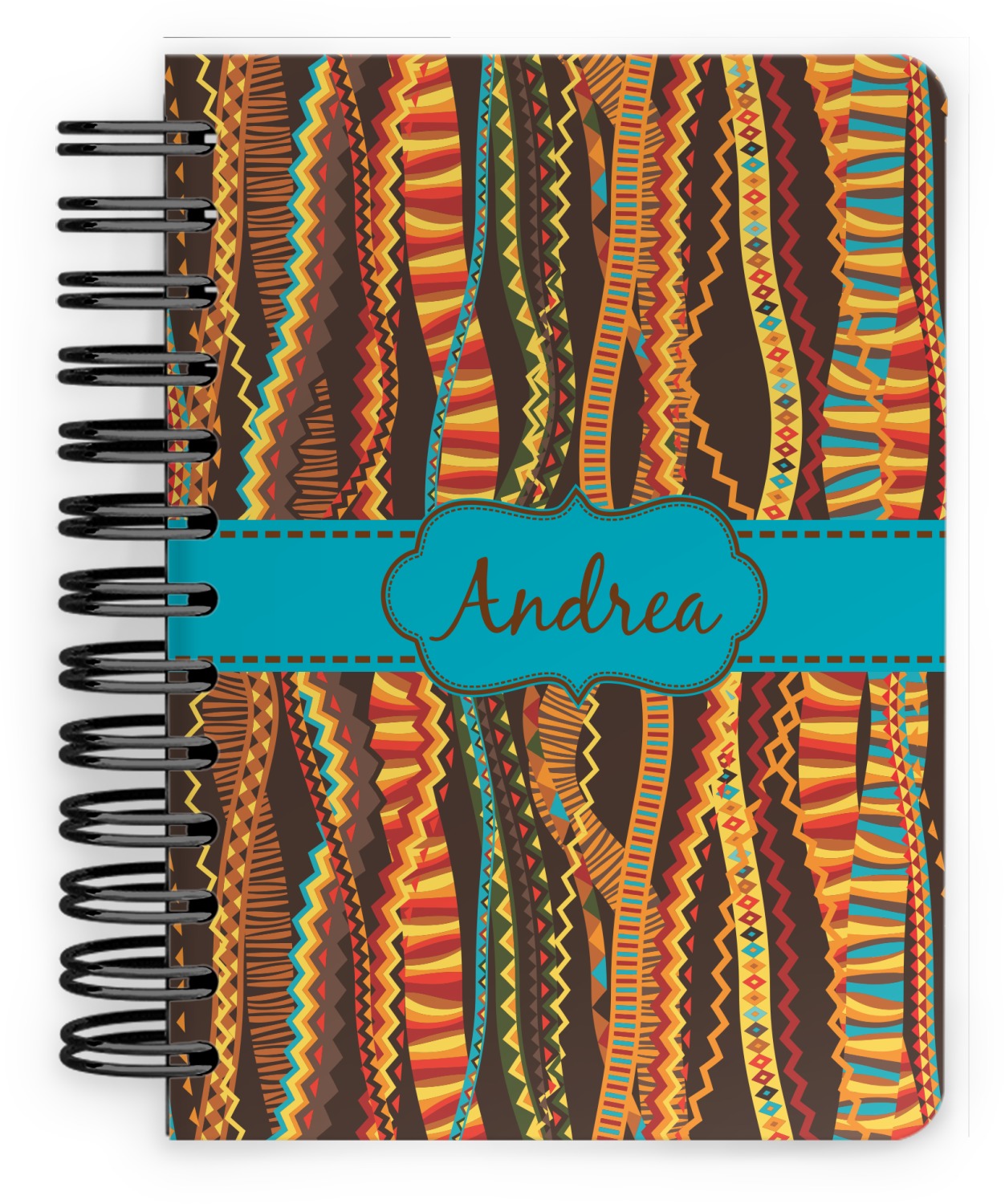 This spiral notebook includes 75 sheets of thick, ruled paper. The front and back of this custom notebook is made of a robust, laminate, plastic covering. We print your personalization on these two panels, underneath a glossy finish, which emphasizes the colors of your design. The two panels and the sheets of paper are held together by a sturdy, black coil. The paper within your bound notebook is perforated for easy, clean tearing.