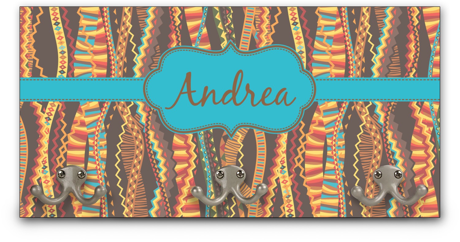 This coat rack is the perfect way to add some personality to your wall or entryway. The board is made of a strong maple that is approximately 16" x 8". The three 2-prong hooks are a sturdy metal that have three screws attaching them to the board. Your design is printed right onto the front of the board while the back and sides are a simple black.
