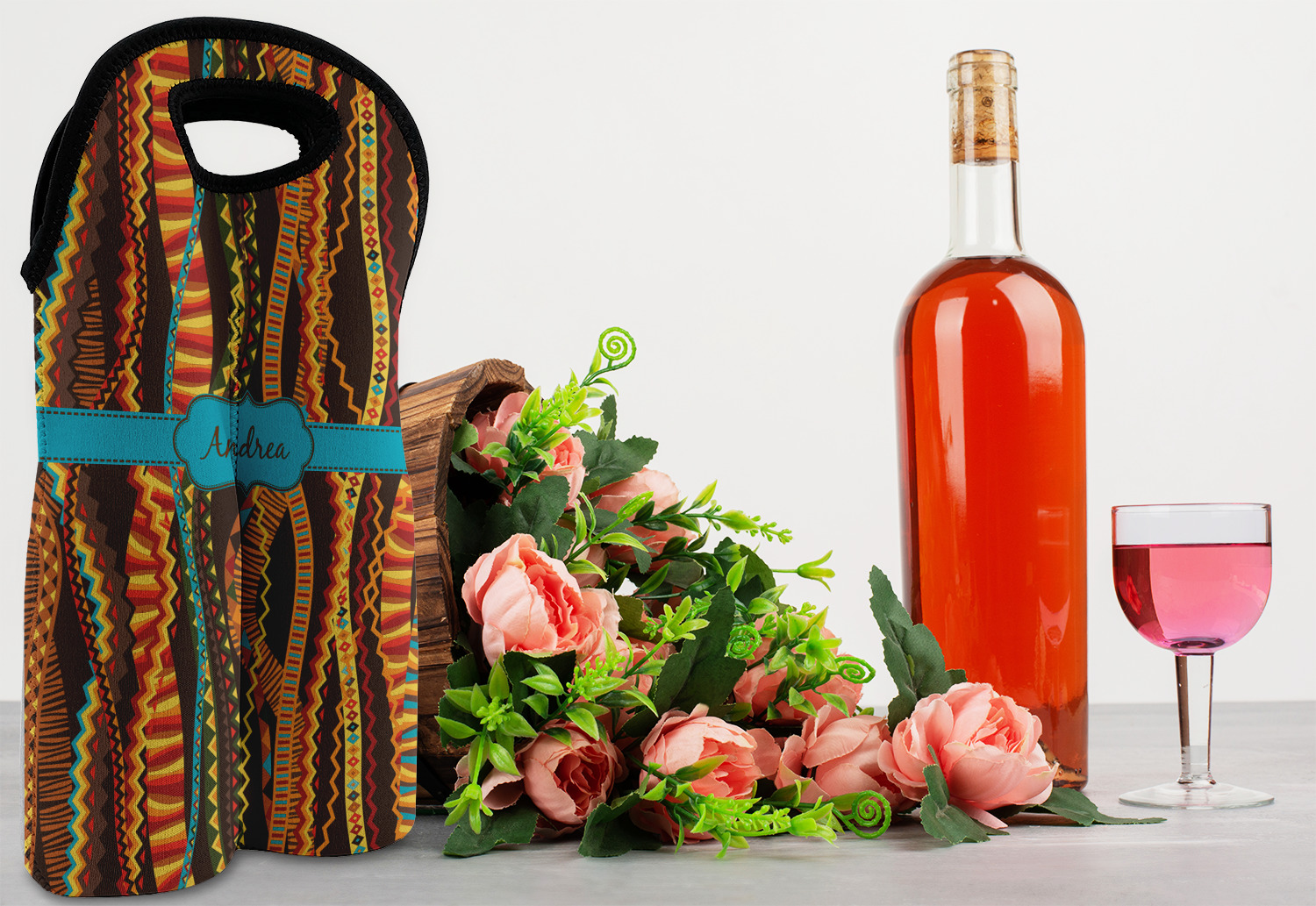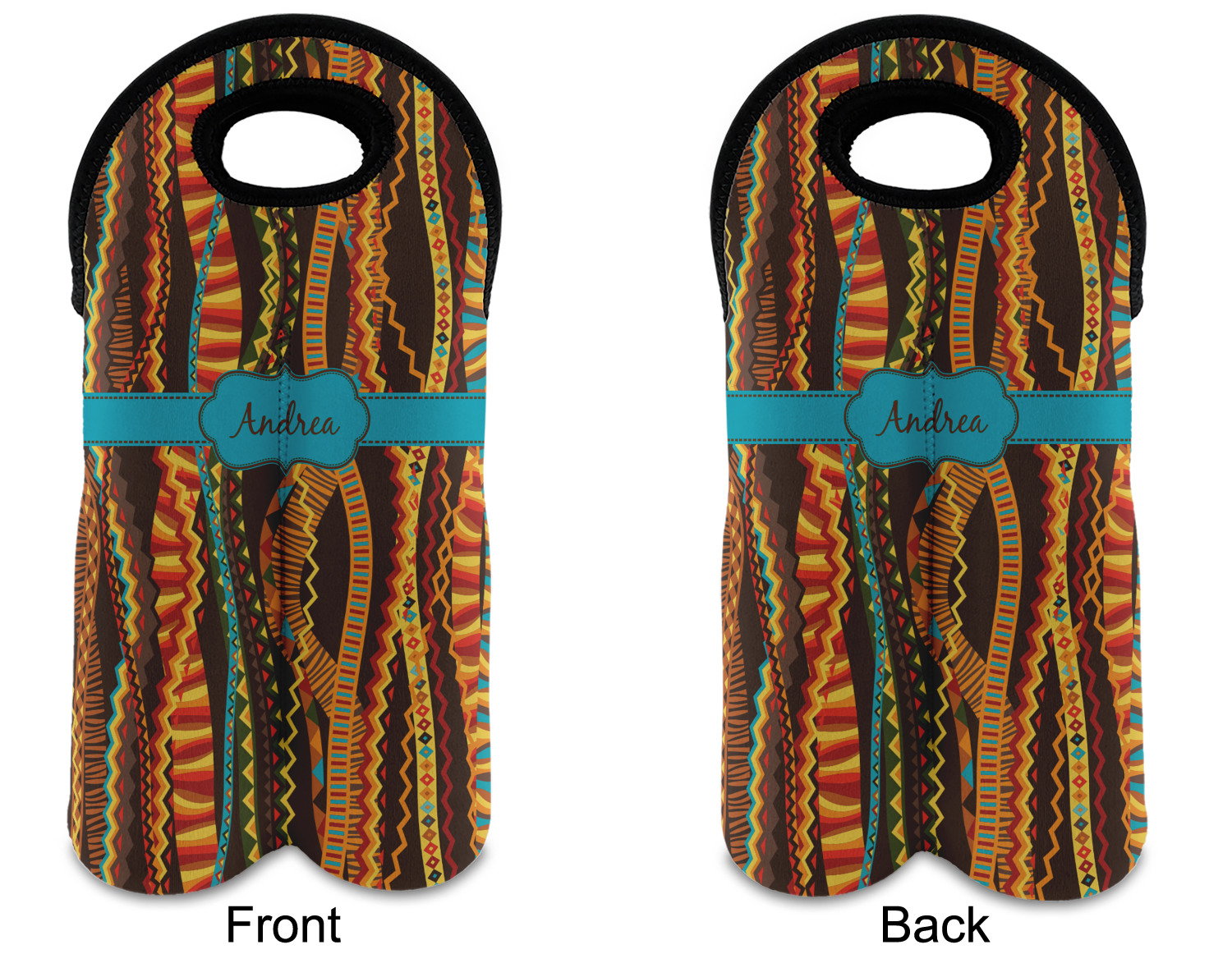 These tote bags are insulated to keep the bottles cold and have a stitched separation down the middle and double handles to keep the two bottles safe and secure during travels.
