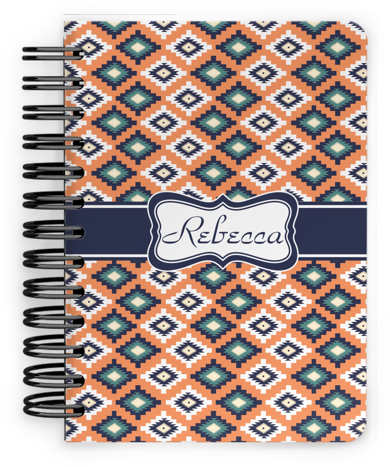 This spiral notebook includes 75 sheets of thick, ruled paper. The front and back of this custom notebook is made of a robust, laminate, plastic covering. We print your personalization on these two panels, underneath a glossy finish, which emphasizes the colors of your design. The two panels and the sheets of paper are held together by a sturdy, black coil. The paper within your bound notebook is perforated for easy, clean tearing.