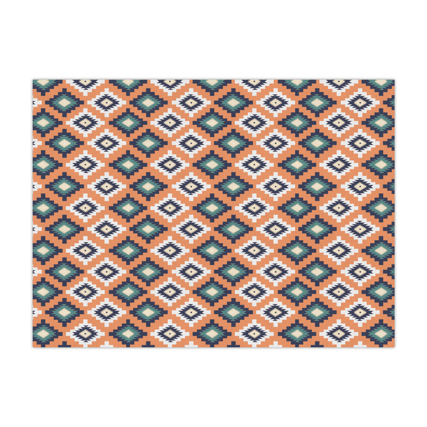 This fun, tribal design features stitched diamonds in cream and blue, scattered across a pale orange background. The effect is rather mesmerizing.