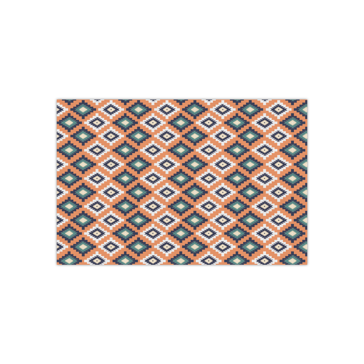 This fun, tribal design features stitched diamonds in cream and blue, scattered across a pale orange background. The effect is rather mesmerizing.