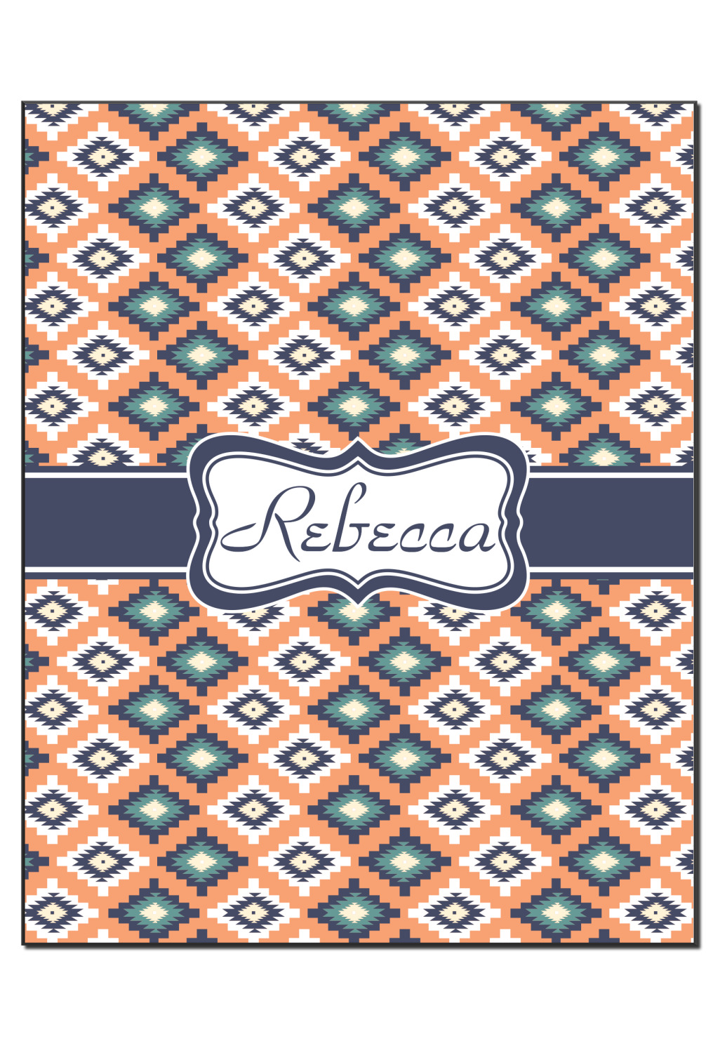 This fun, tribal design features stitched diamonds in cream and blue, scattered across a pale orange background. The effect is rather mesmerizing.