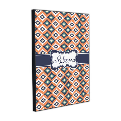 This fun, tribal design features stitched diamonds in cream and blue, scattered across a pale orange background. The effect is rather mesmerizing.