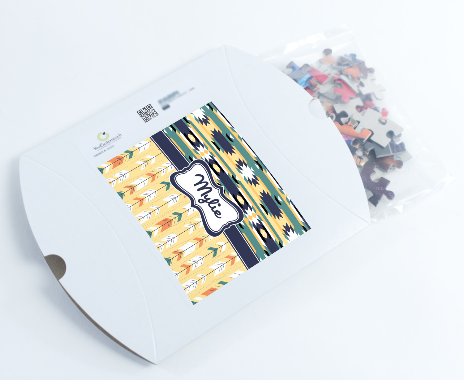 You can also upload your logo or art that you or your kids drew. To create more challenging jigsaw puzzles, you can create a pattern from with your logo or artwork. You can also add other elements such as text or personalization.