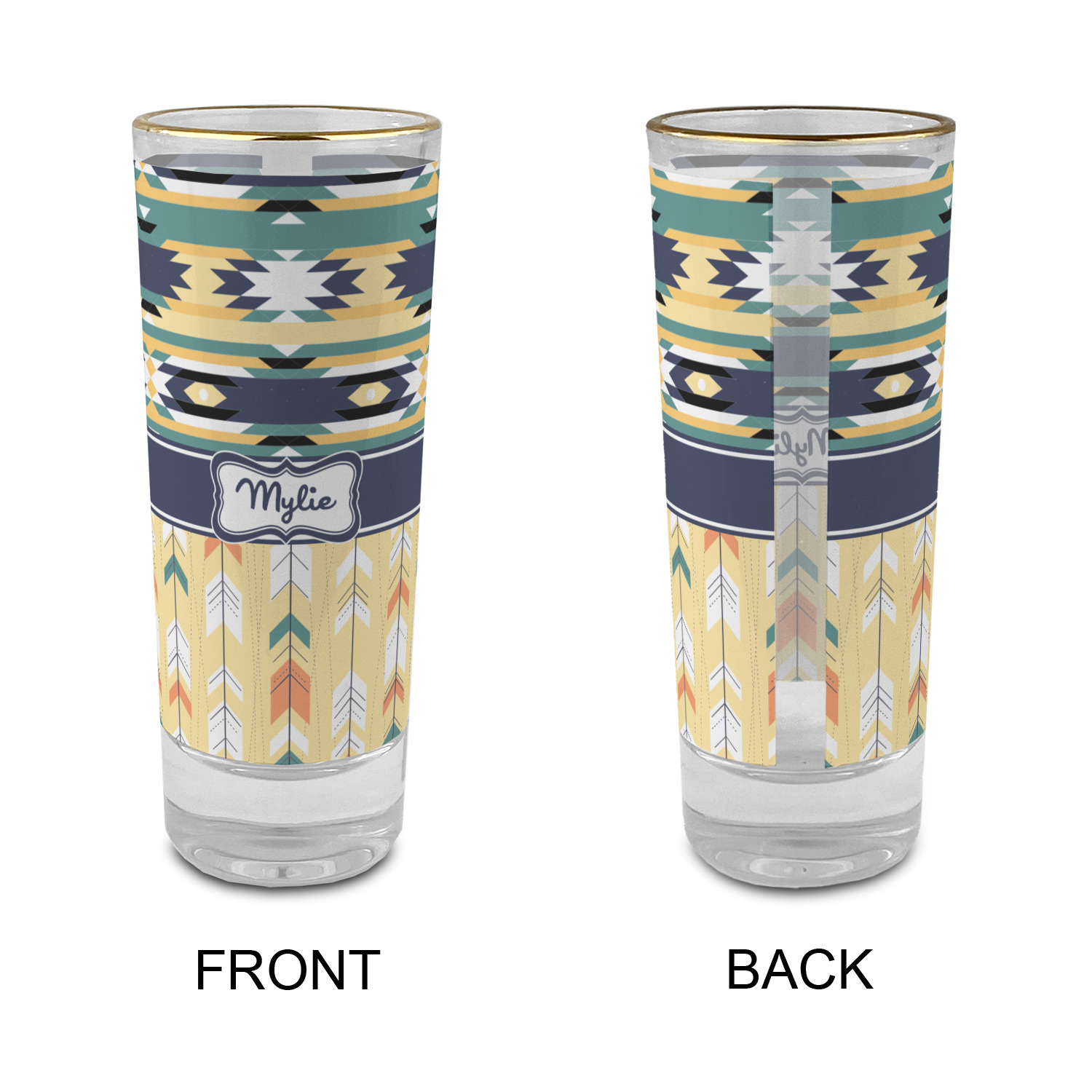 These glass shooter glasses are printed in full color with the design of your choice. These are a tall shooter 2 oz size and stand 4" tall. The print is a full wrap design to boldly display your personalization.