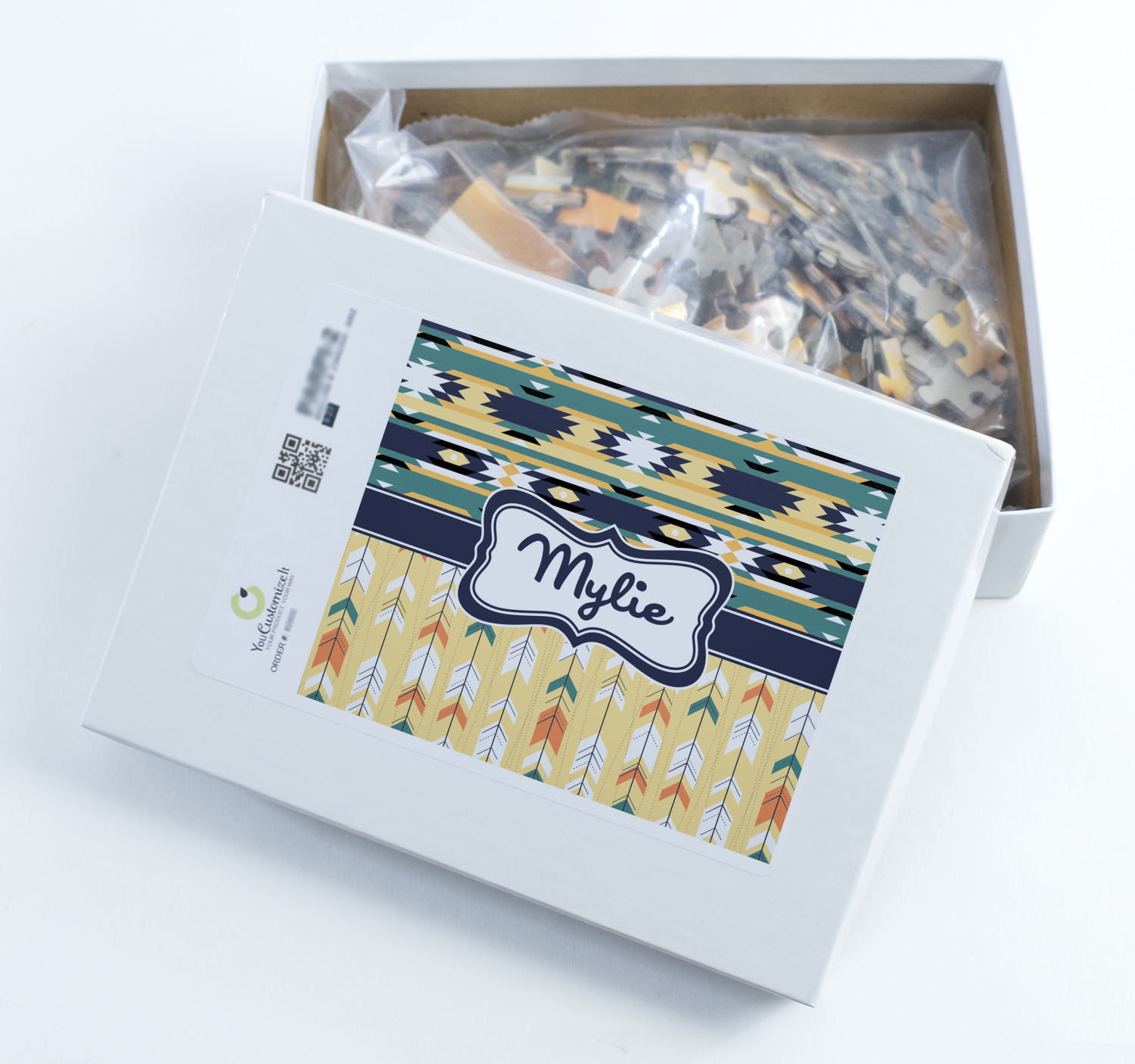 You can also upload your logo or art that you or your kids drew. To create more challenging jigsaw puzzles, you can create a pattern from with your logo or artwork. You can also add other elements such as text or personalization.