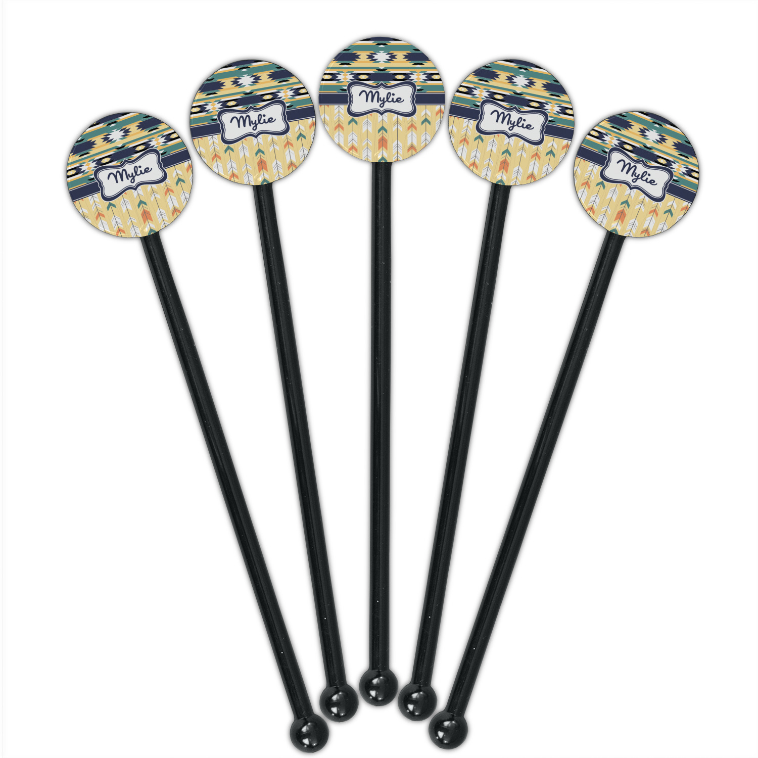 Shape + Symbol Designs for 5.5" Round Plastic Stir Sticks - Black - Single-Sided