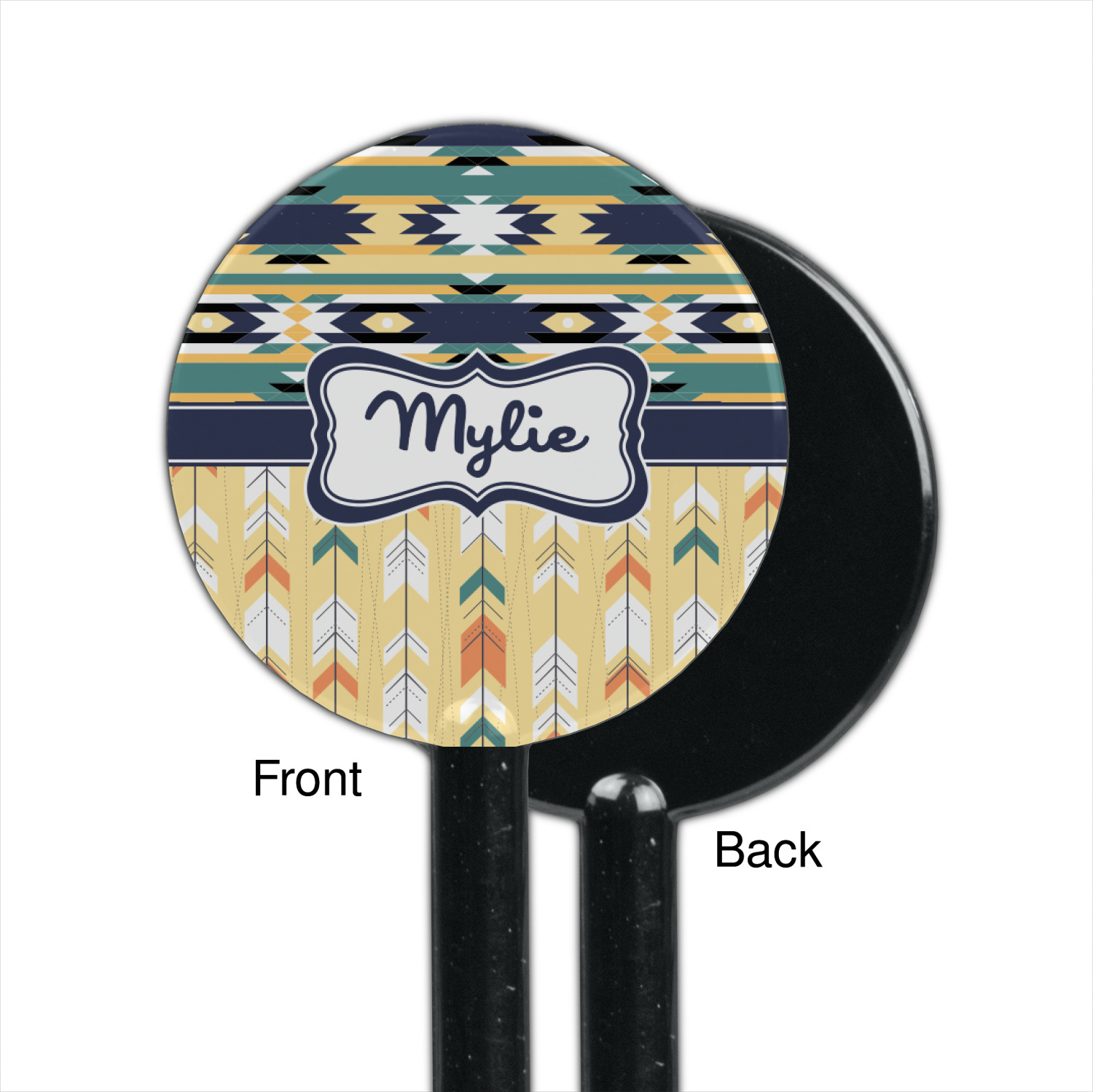 Triangles Designs for 5.5" Round Plastic Stir Sticks - Black - Single-Sided