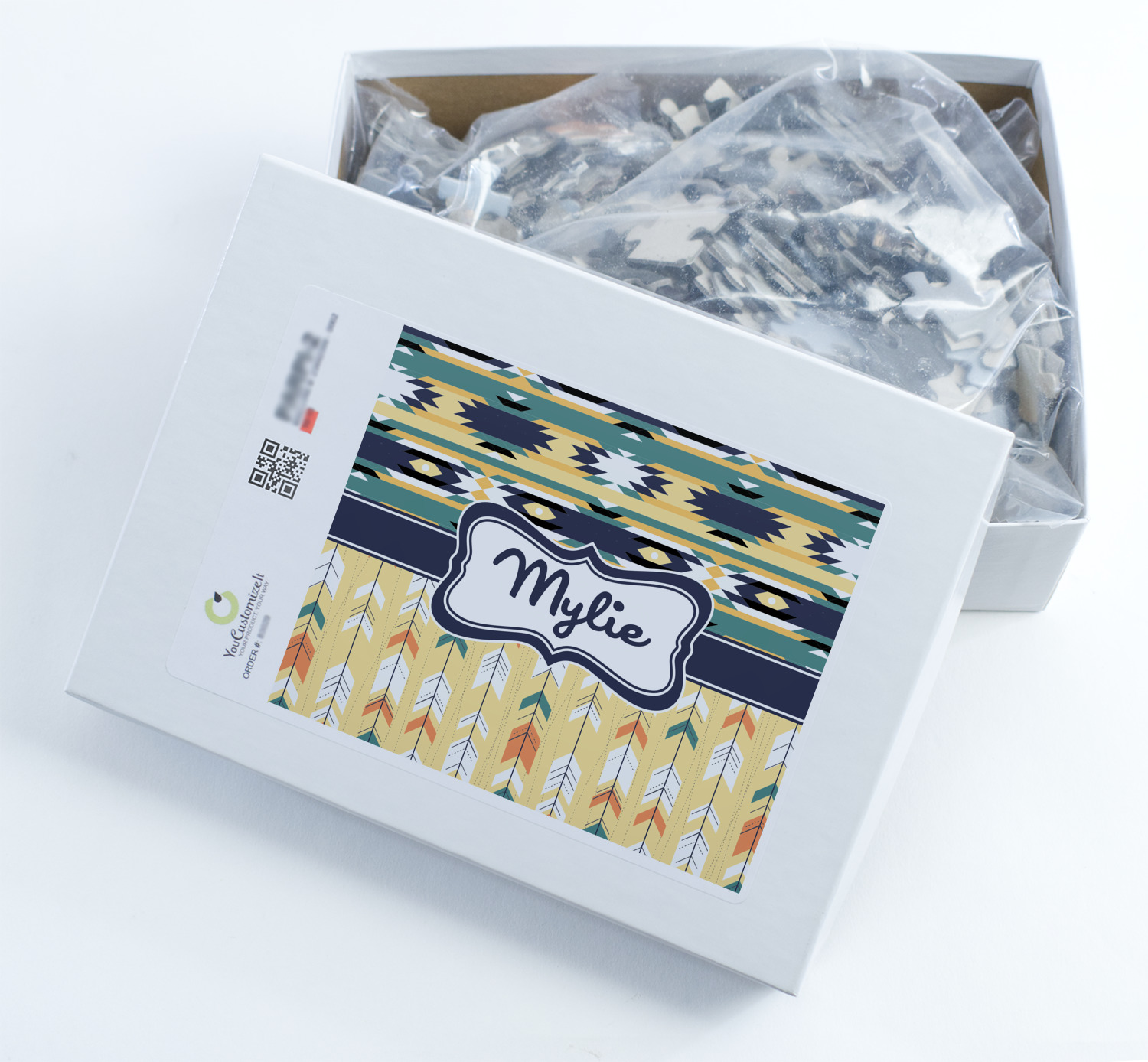 You can also upload your logo or art that you or your kids drew. To create more challenging jigsaw puzzles, you can create a pattern from with your logo or artwork. You can also add other elements such as text or personalization.
