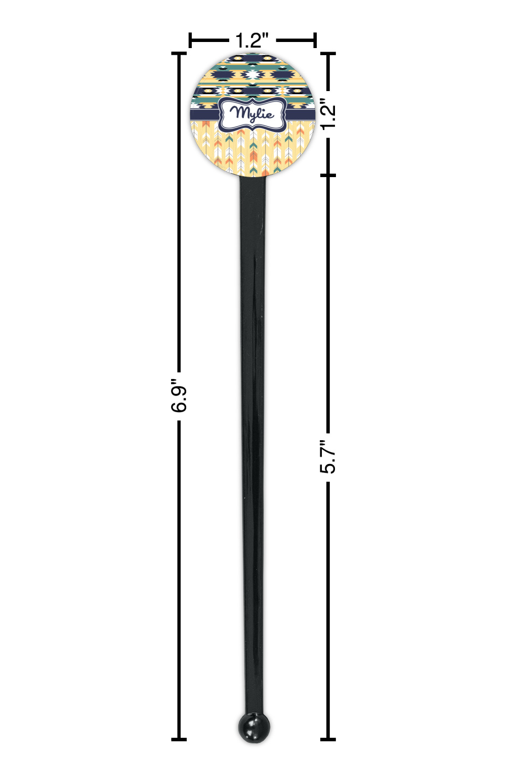 Triangles Designs for 7" Round Plastic Stir Sticks - Black - Single-Sided