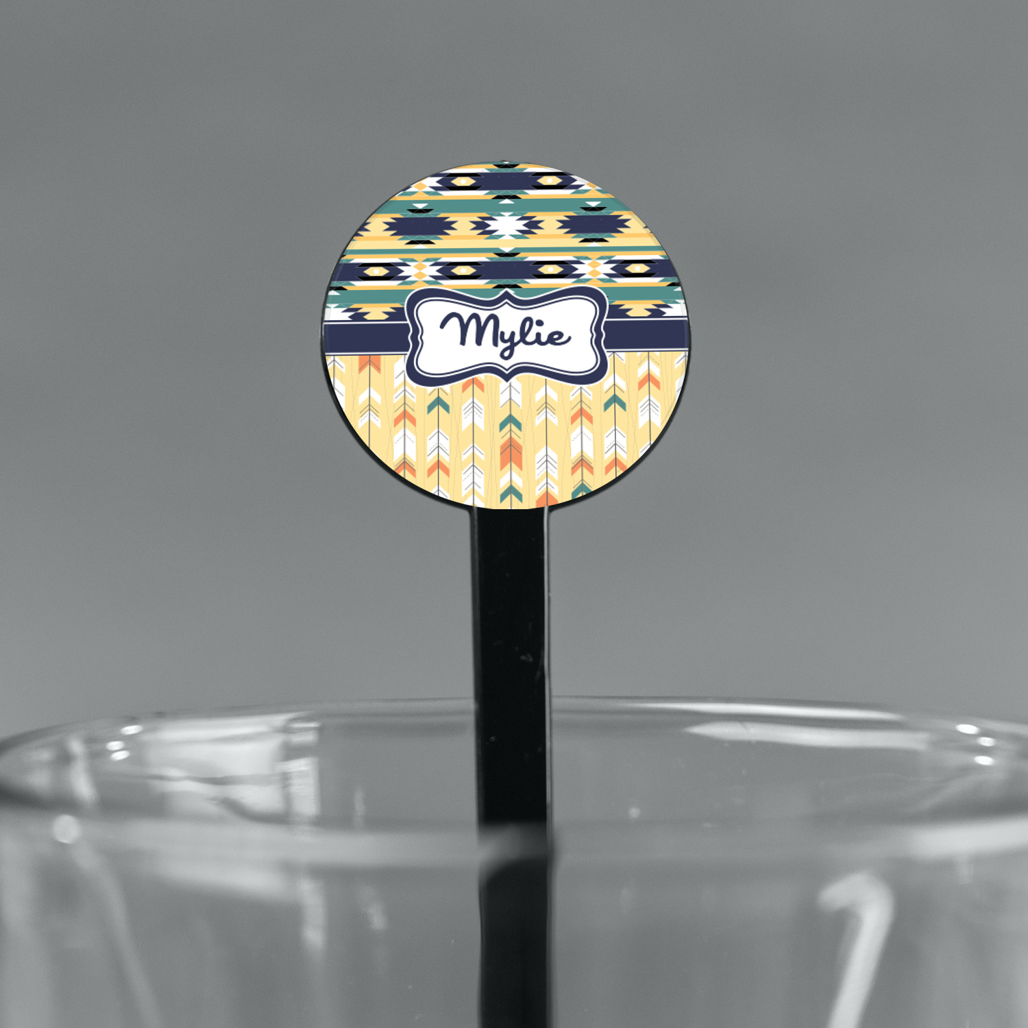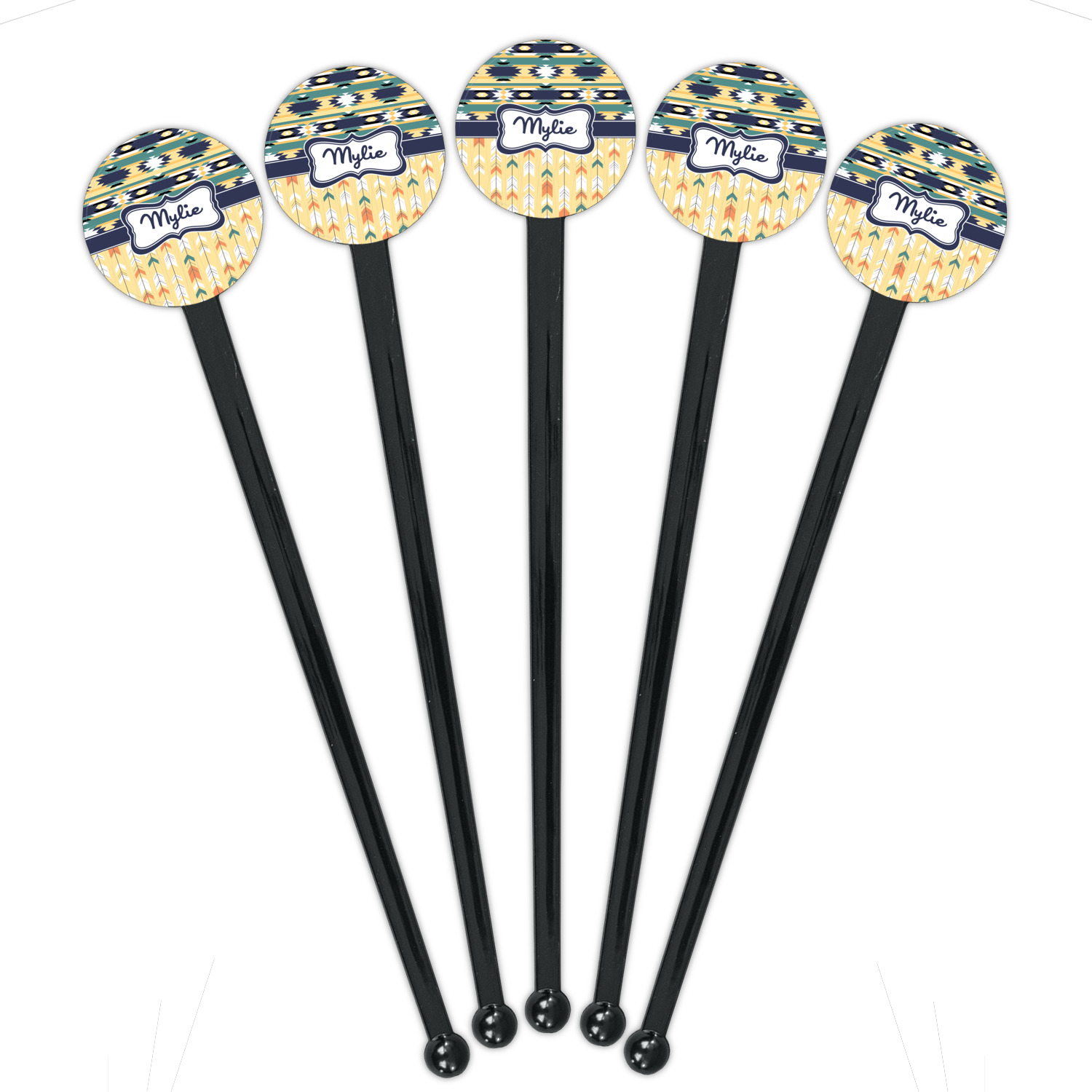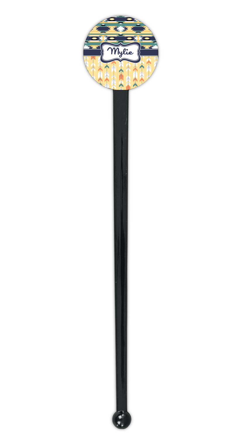 Shape + Symbol Designs for 7" Round Plastic Stir Sticks - Black - Single-Sided