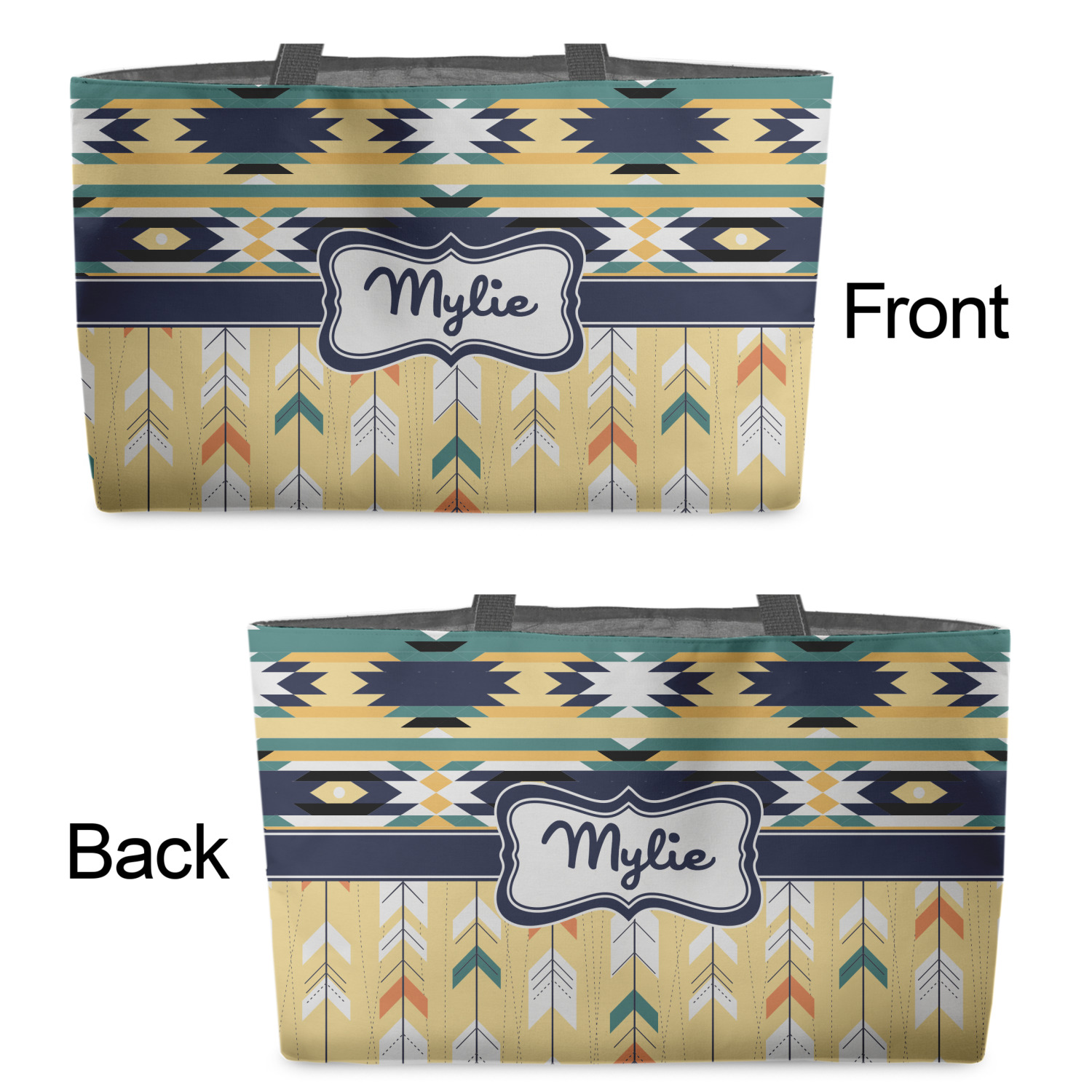 You can design the totes with a design on the front and another one on the back. The two designs can be identical or completely different. The choice is yours.