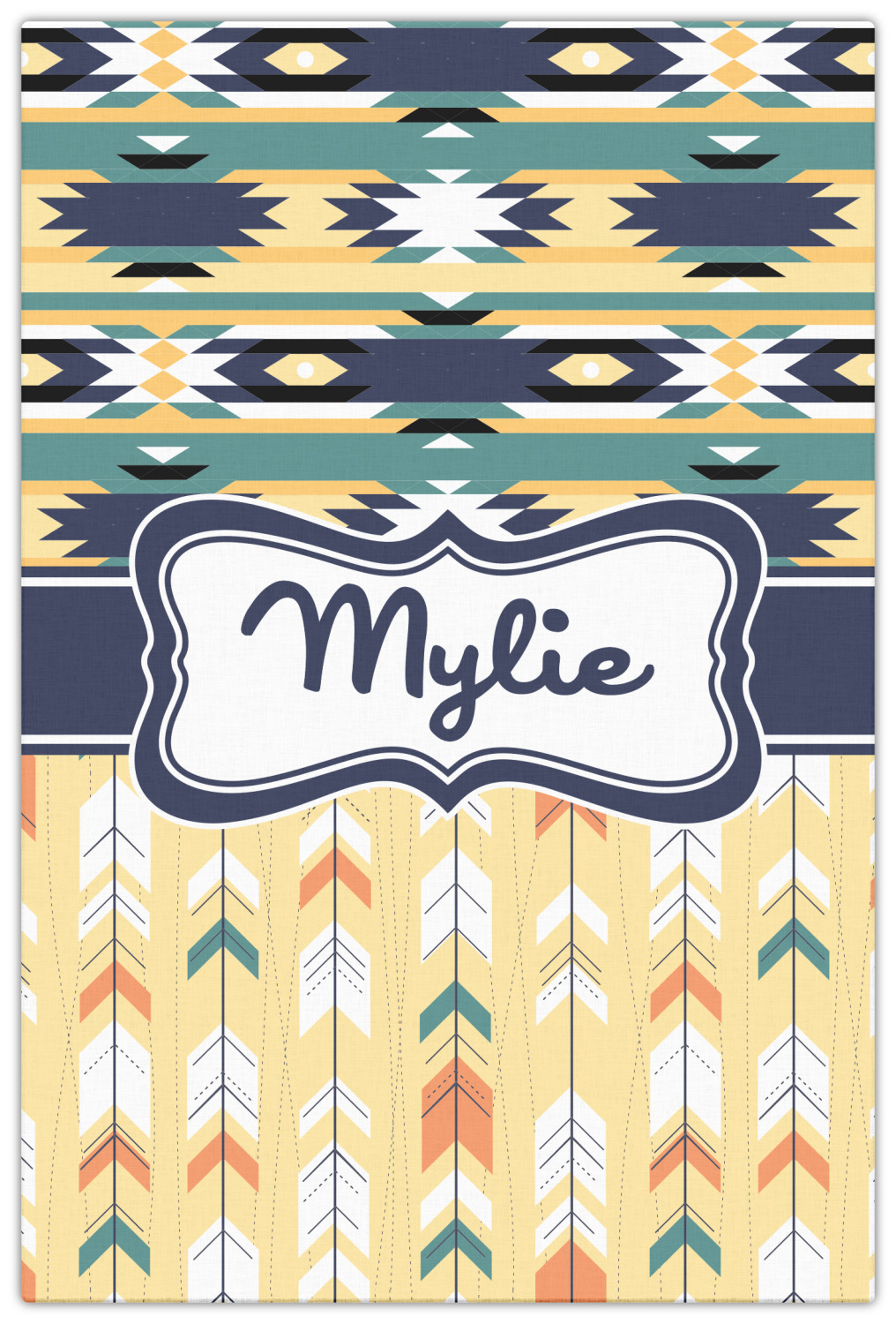 This fun, tribal design features stitched multicolored horizontal stripes on the top, and vertical arrows across the bottom. The two patterns are rather contradicting, but the overall effect is mesmerizing.