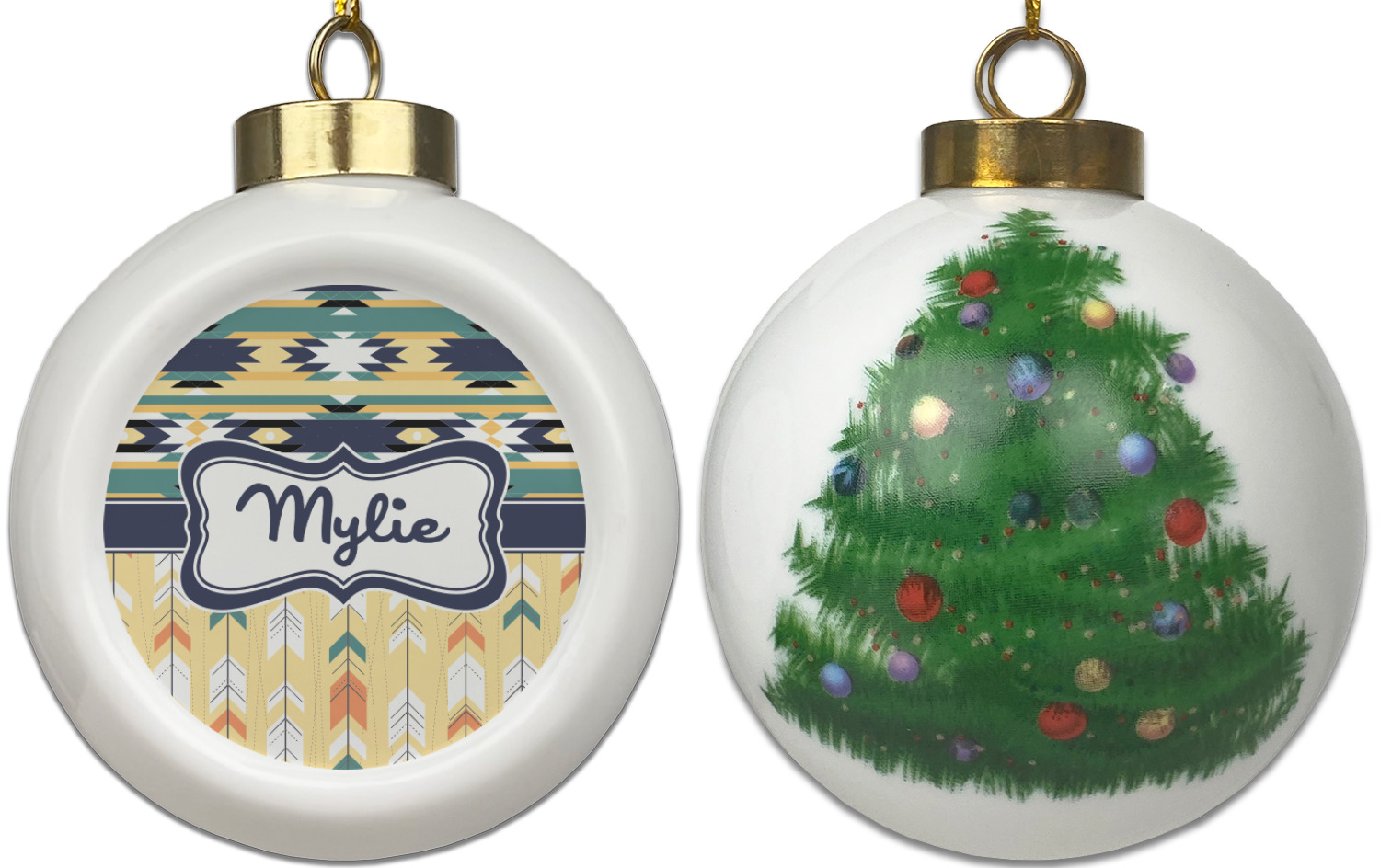 Our Christmas ornaments are a unique ceramic ball shape with a twist as it has a flat face to display your custom design! Select from one of our two design types - Christmas Tree or Poinsettia Garland - to adorn the curved back of your personal design. Each ornament measures 3H x 2.5W x 2D accompanied with a gold string accent for finishing touches to hang on your beautiful Christmas tree!