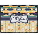 This fun, tribal design features stitched multicolored horizontal stripes on the top, and vertical arrows across the bottom. The two patterns are rather contradicting, but the overall effect is mesmerizing.